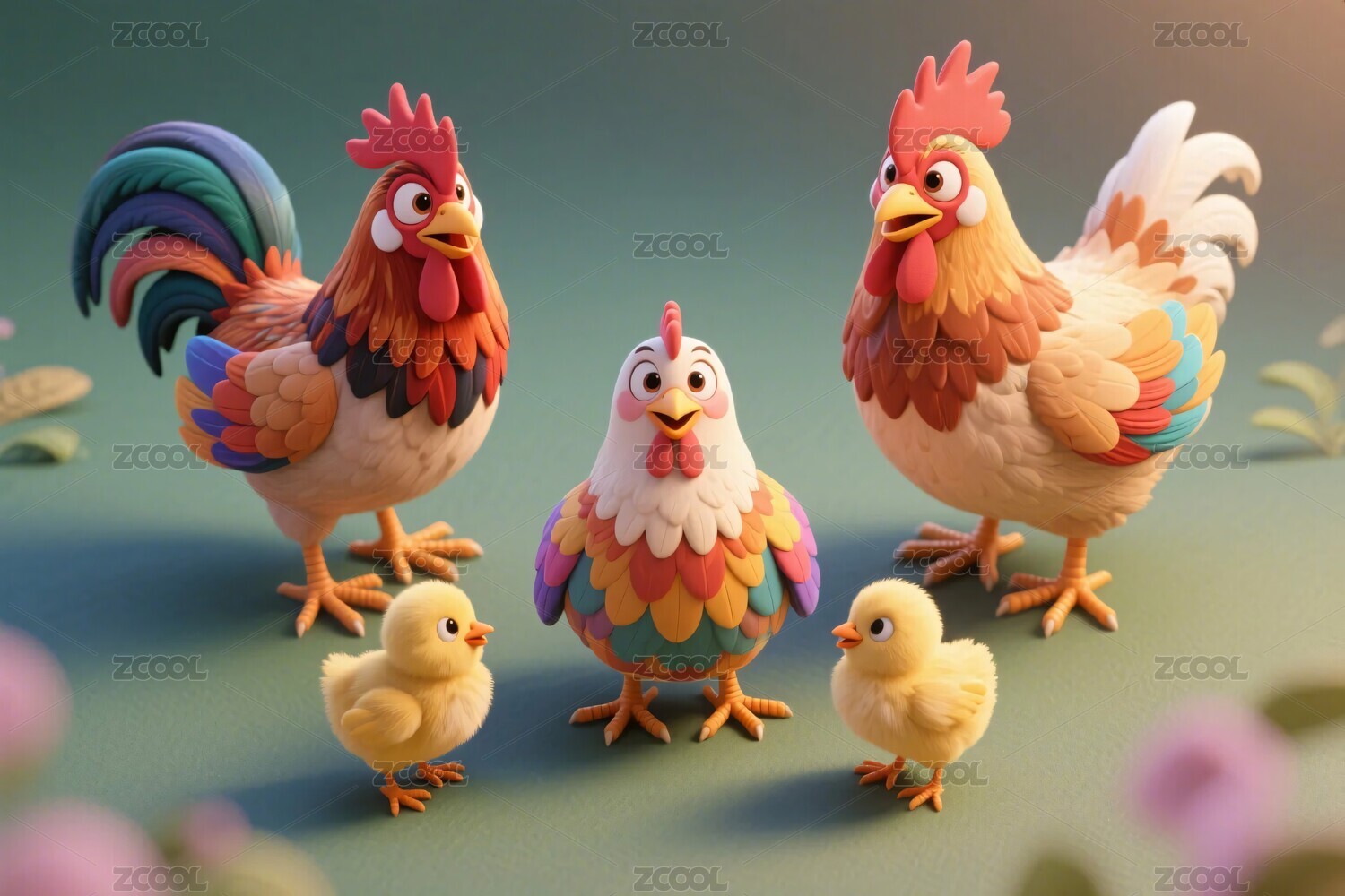 小鸡,公鸡,母鸡,卡通动物,禽类,插画,动画,可爱,矢量,动物素材