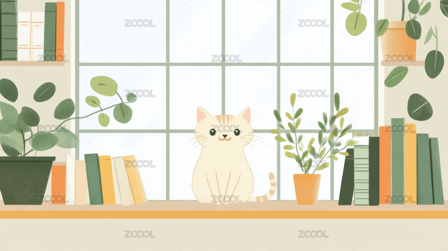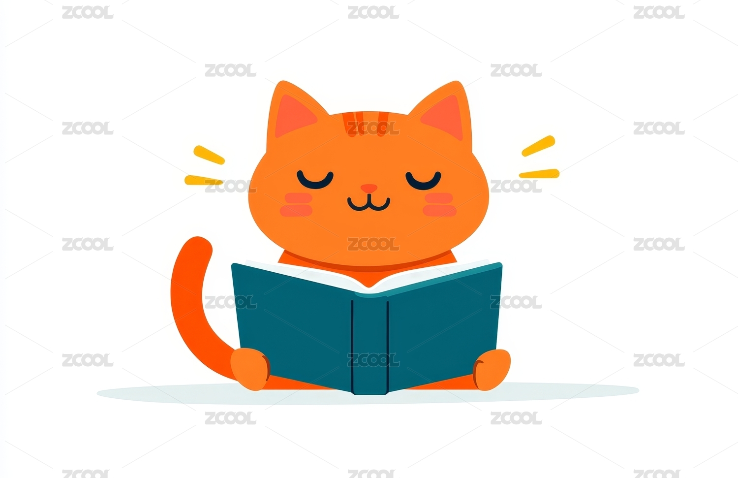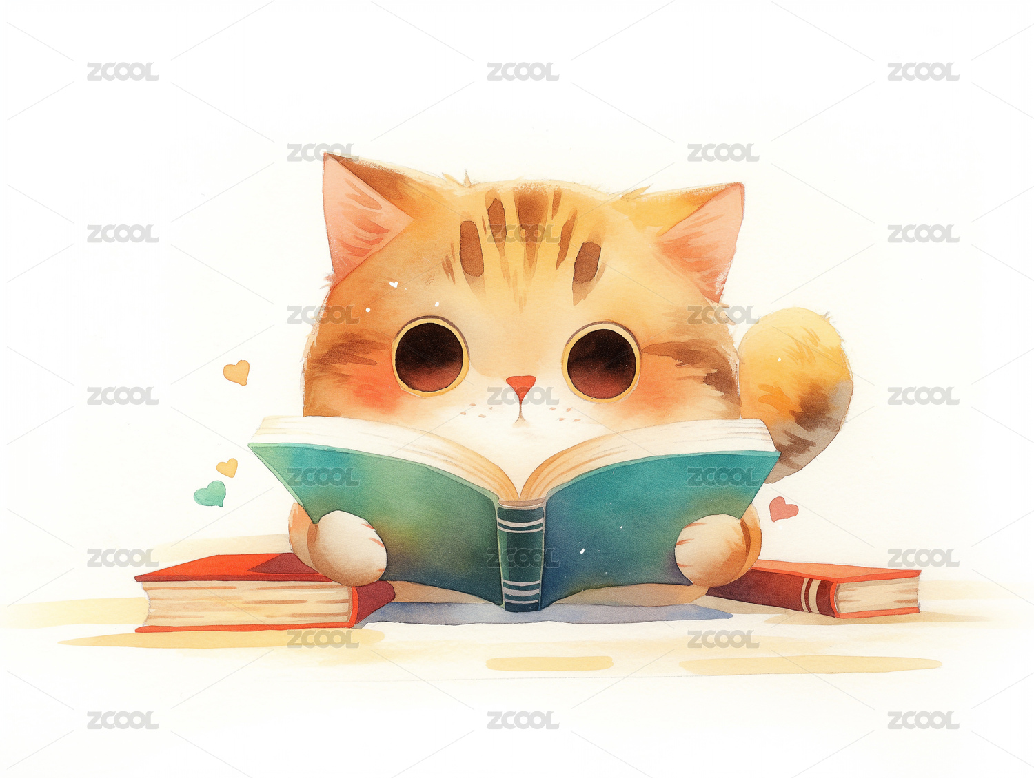 猫咪,书籍,书架,插画,卡通,可爱,堆叠,花朵,爱心,图书馆