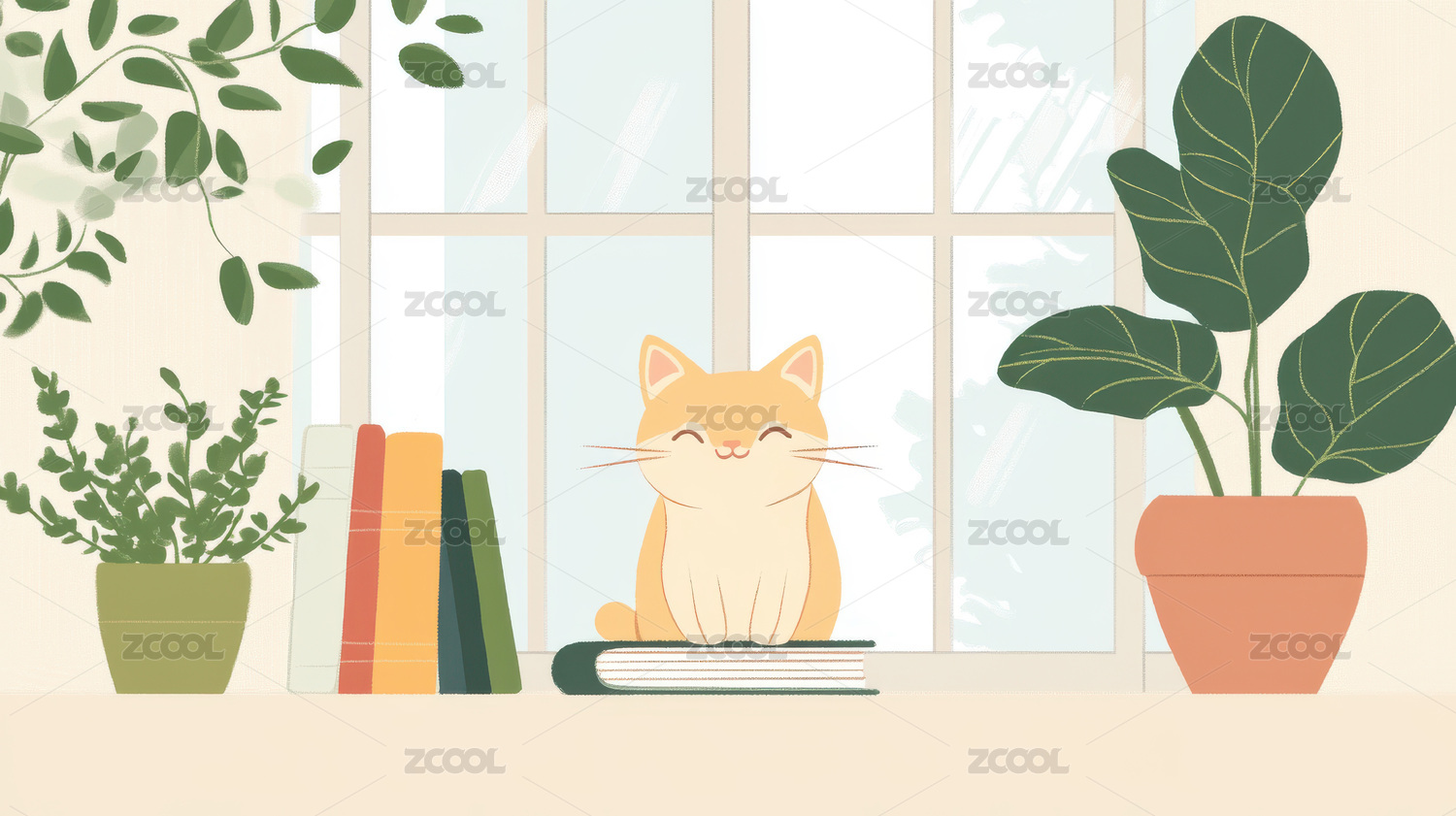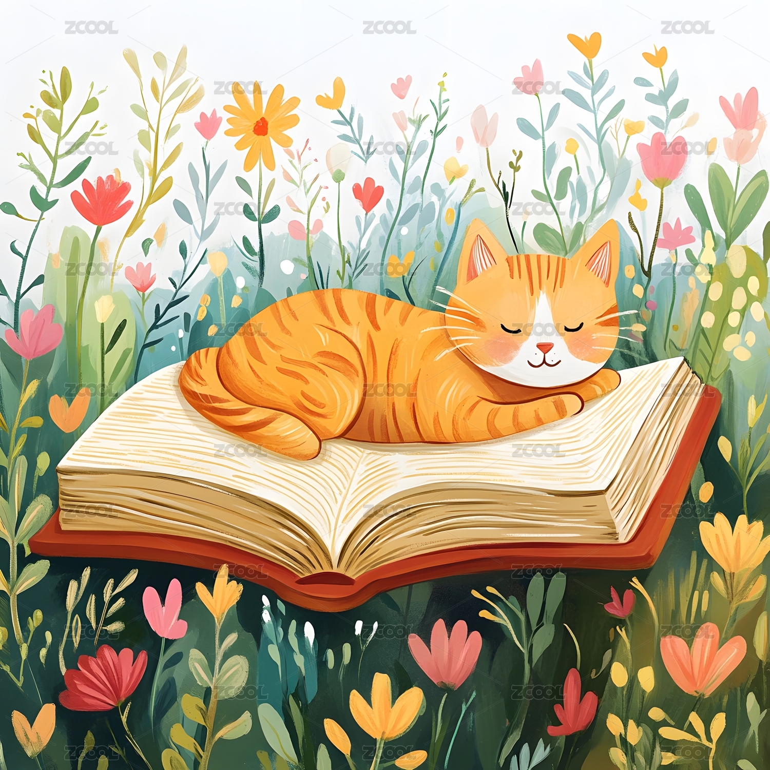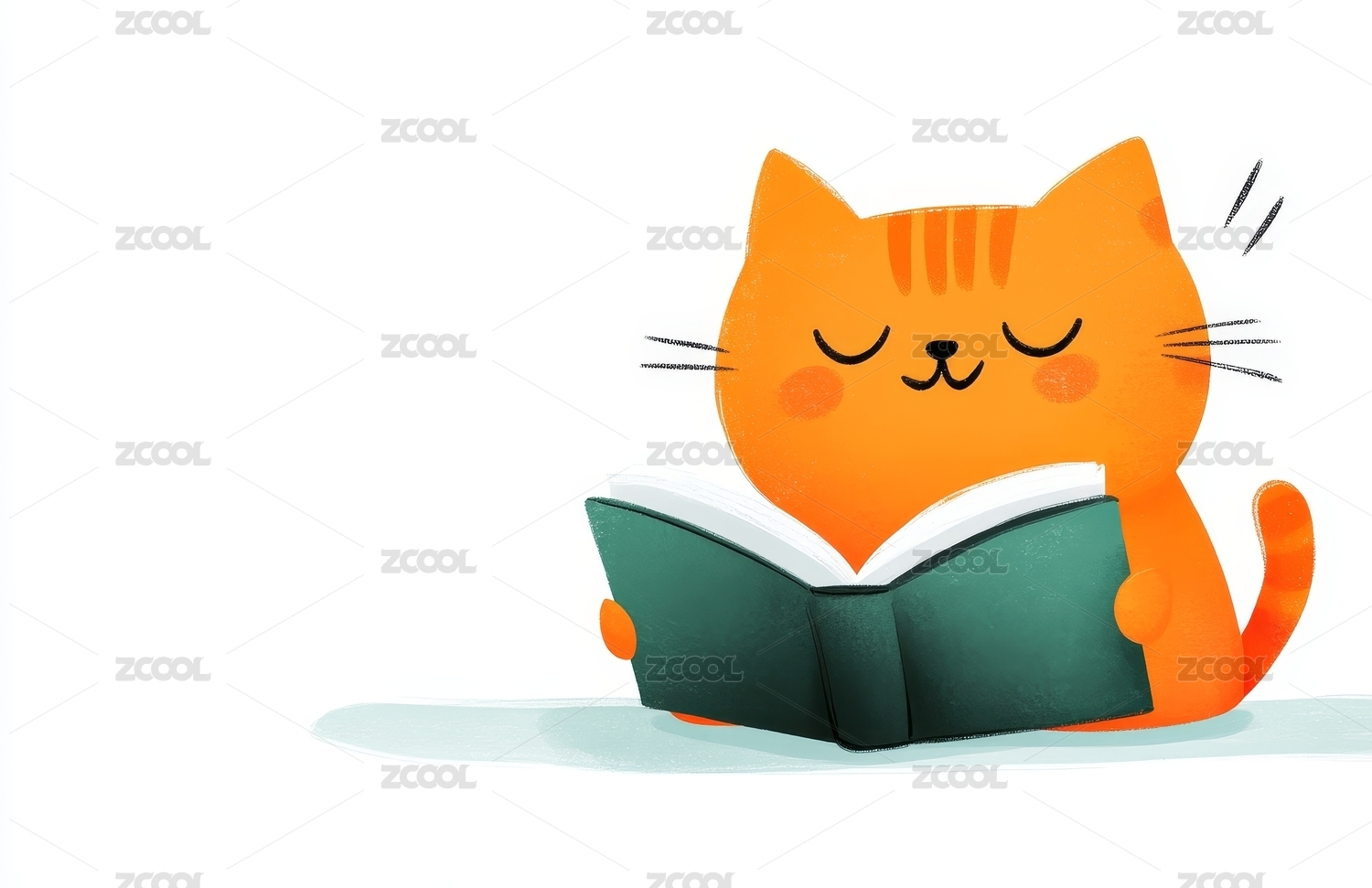 猫咪,书籍,书架,插画,卡通,可爱,堆叠,花朵,爱心,图书馆