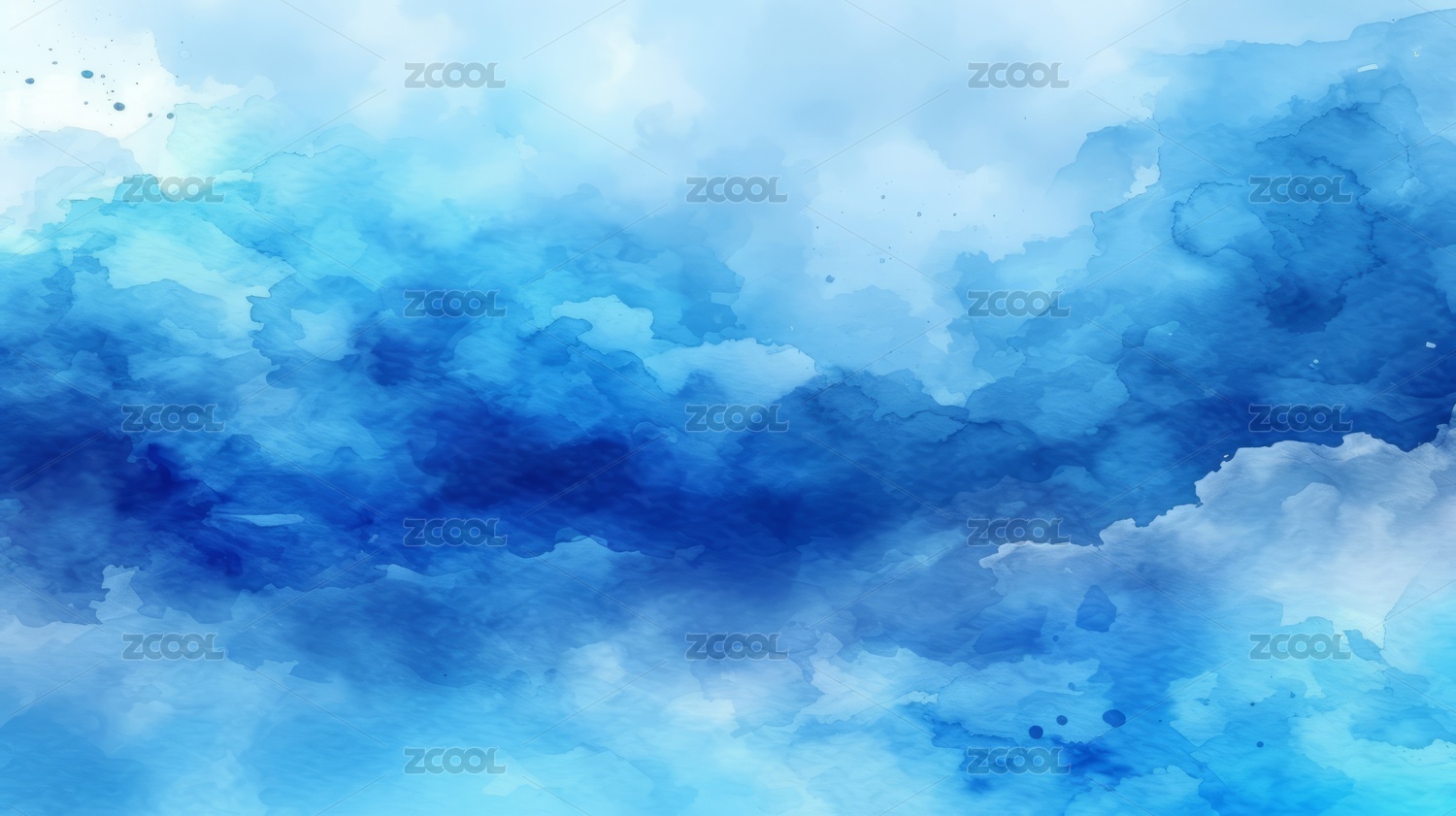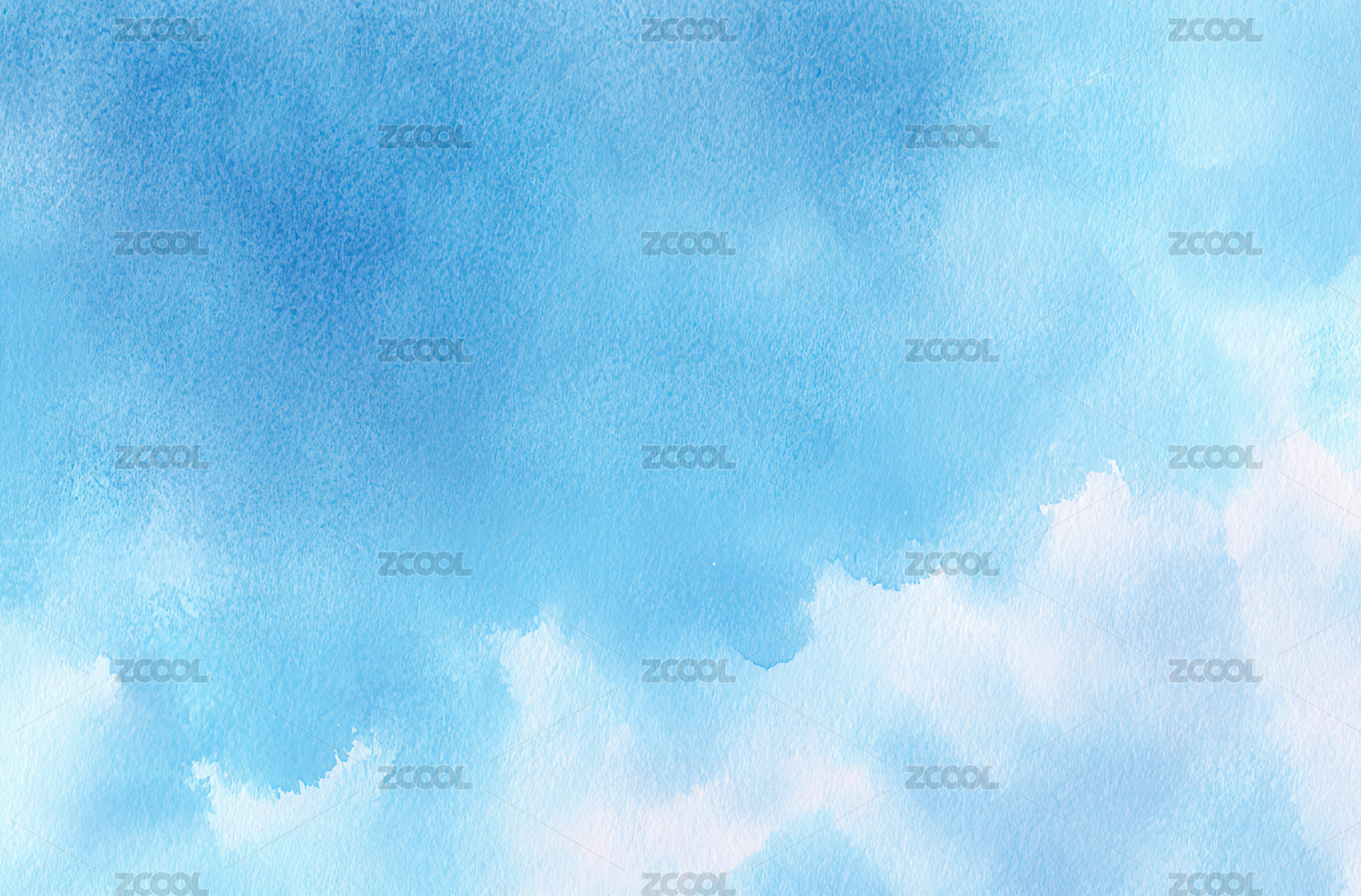 蓝白颜料绘就天空云朵呈现清新艺术的视觉