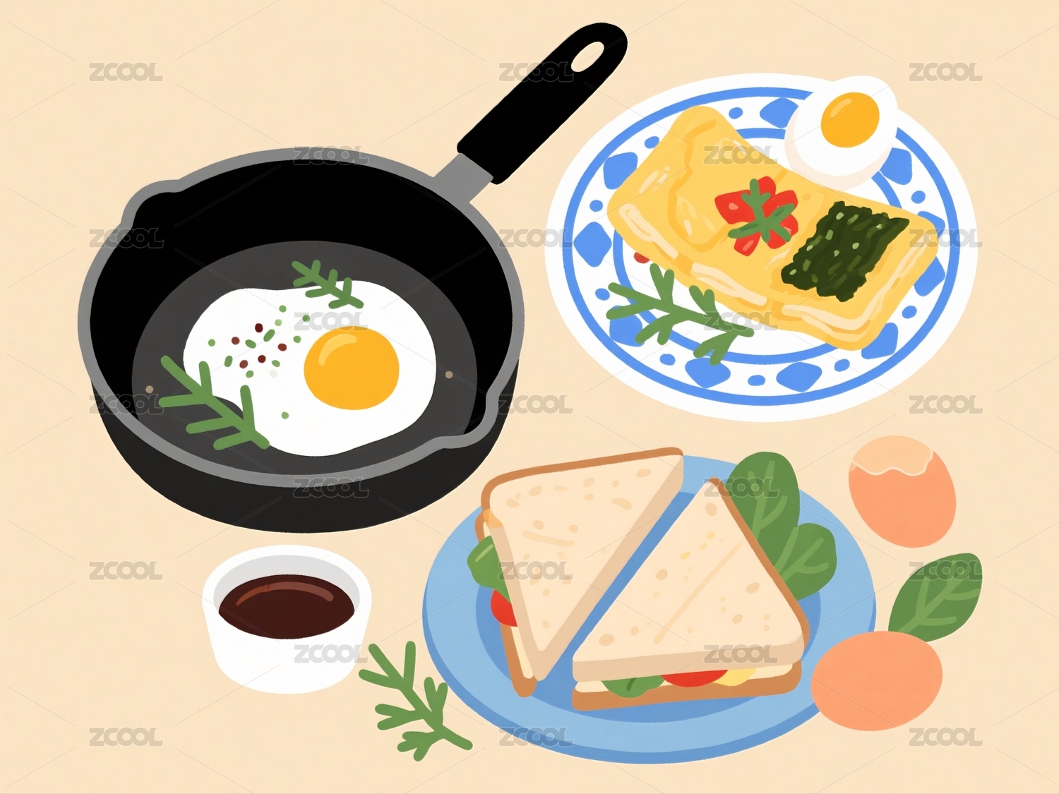 美食插画煎蛋早餐