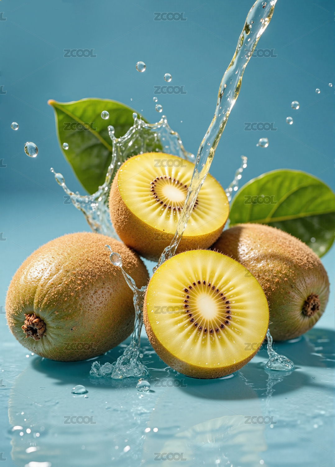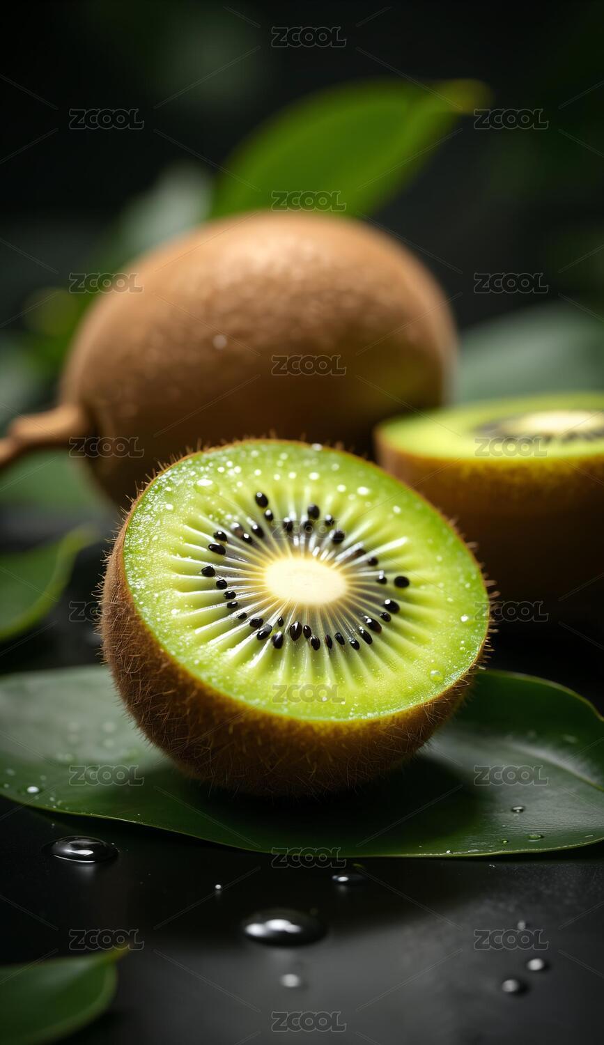 猕猴桃,微型小人,创意场景,插画,艺术,水果,树叶,背景,色彩,合成