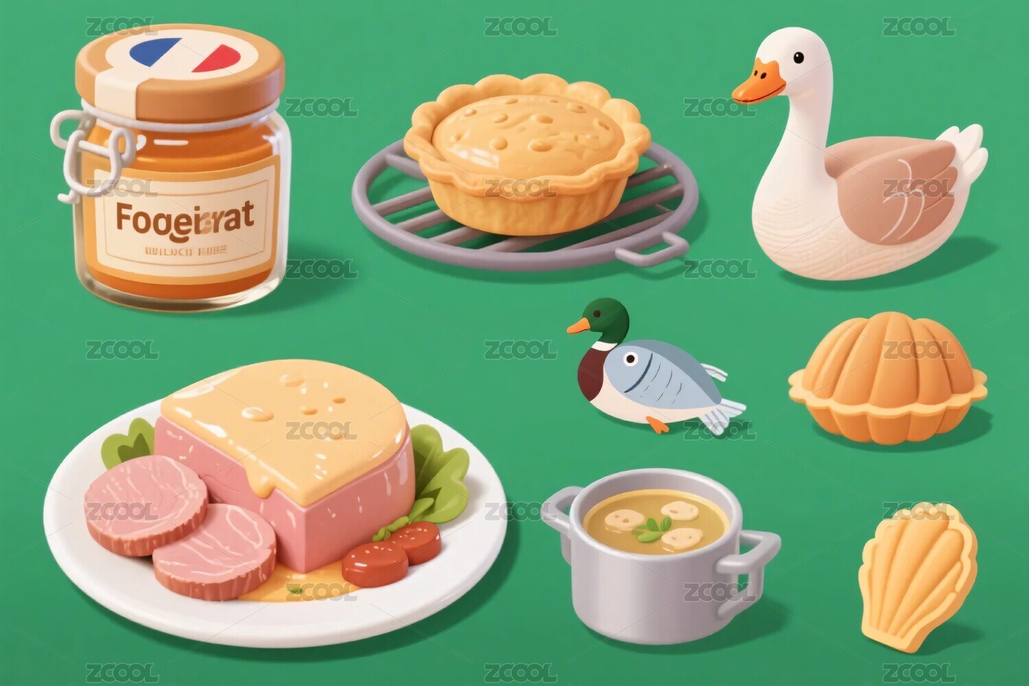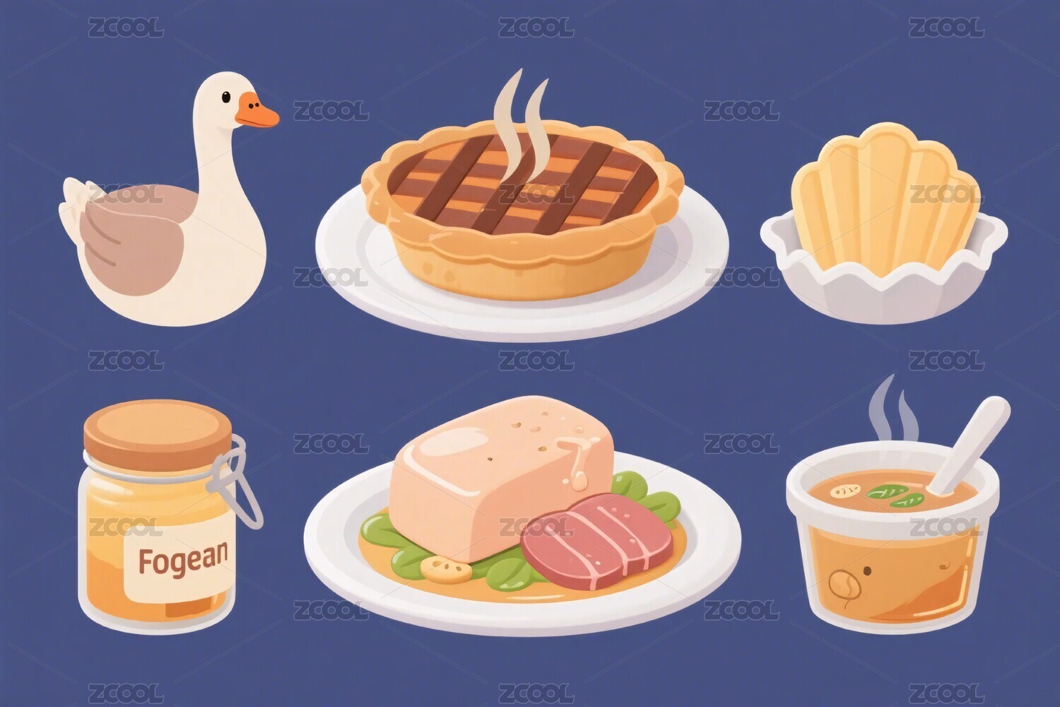 食品,卡通,插画,小鸭,食物,餐具,餐盘,食材,烹饪,模板