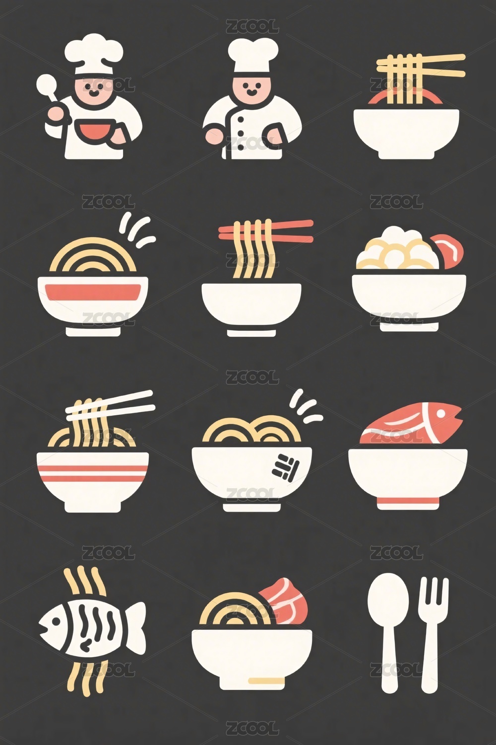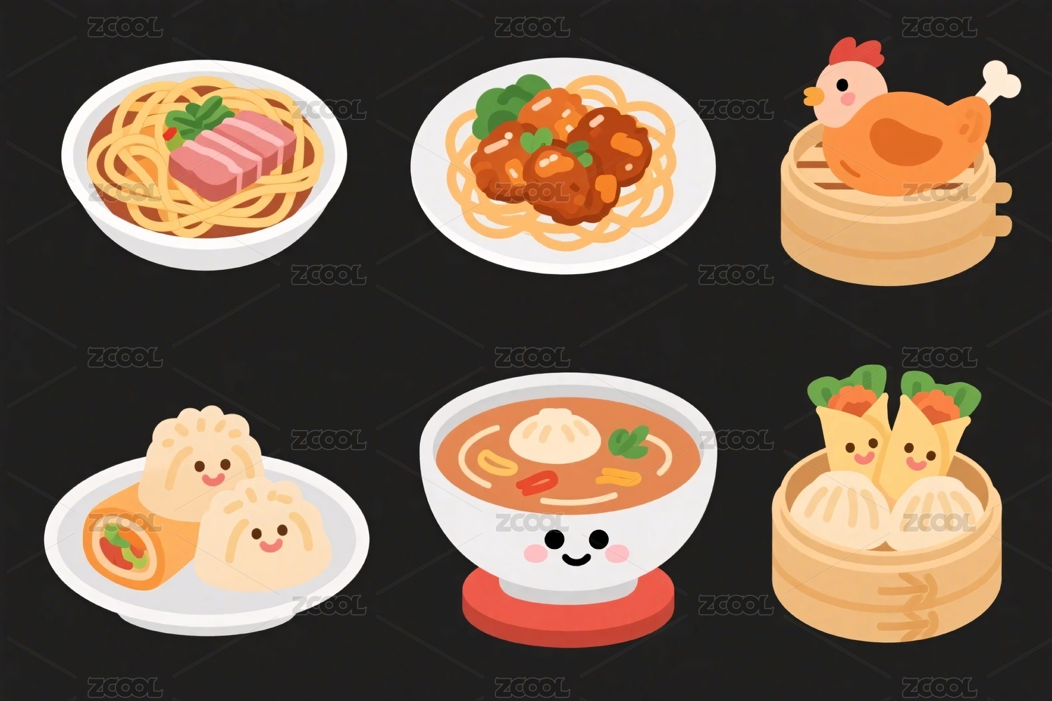 美食,插画,图标,中式,菜肴,汤品,热菜,冷盘,丸子,汤面