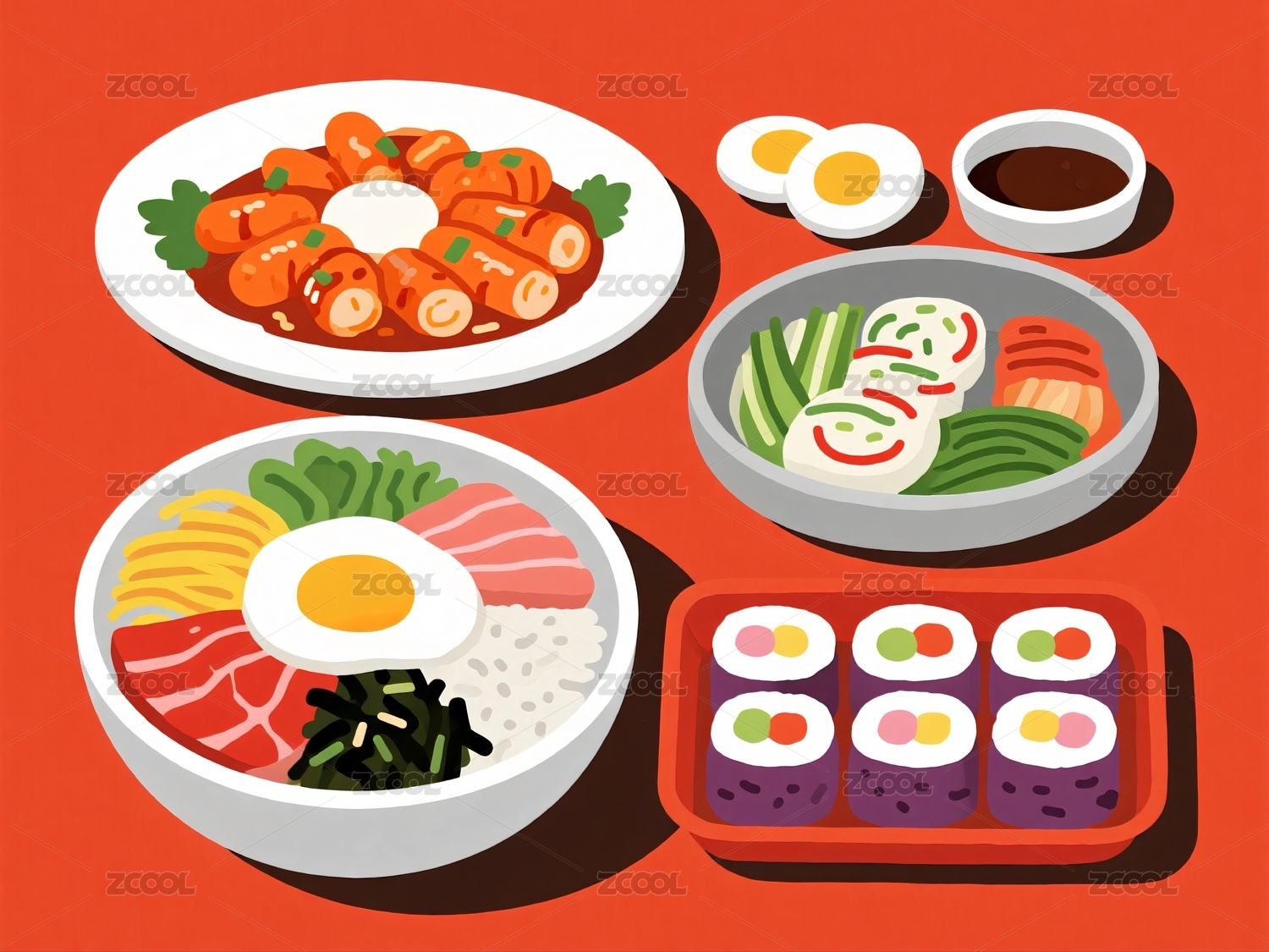 中式美食卡通插画