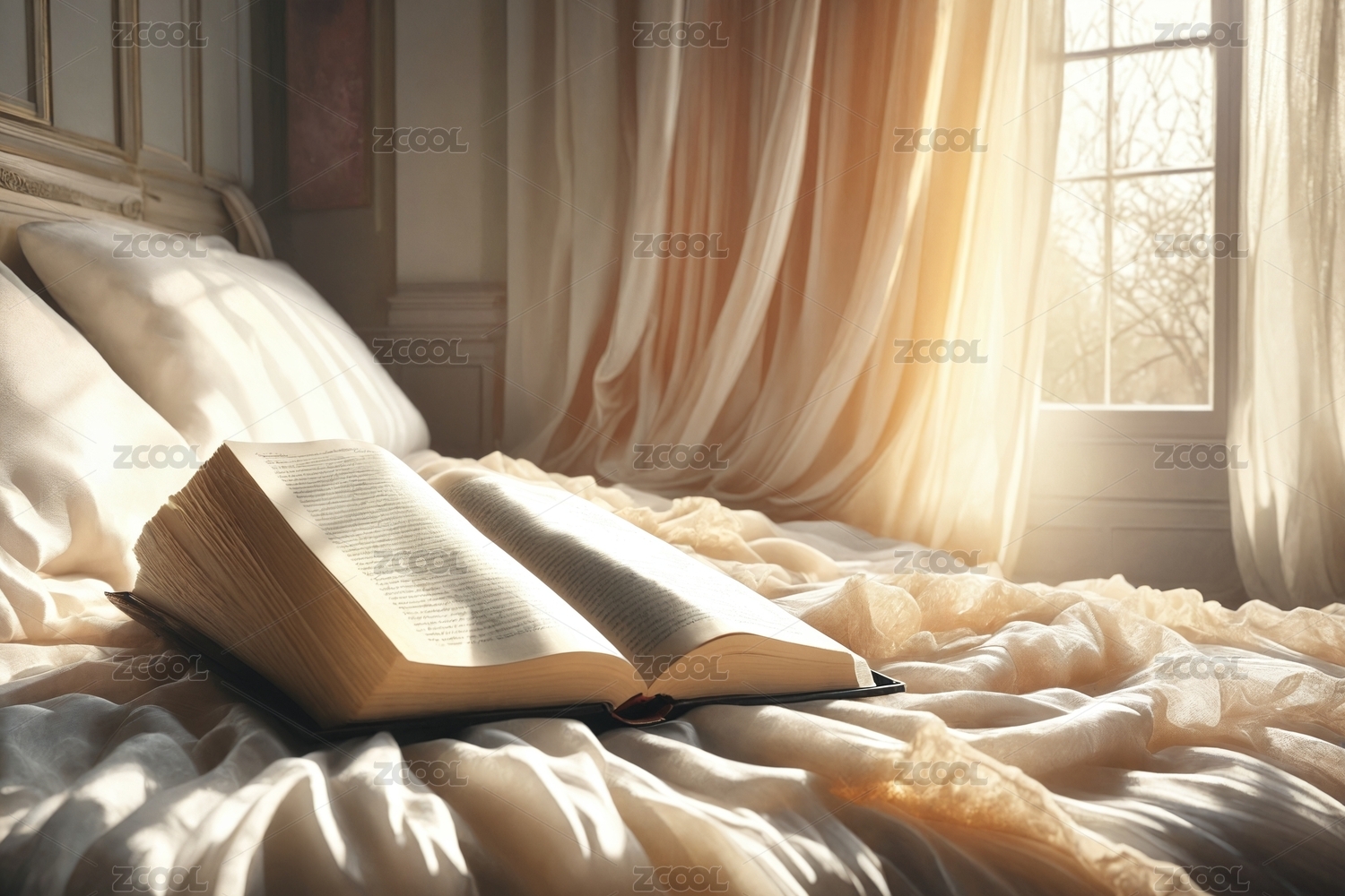 在舒适的阅读角柔软的毯子和一本摊开的书
