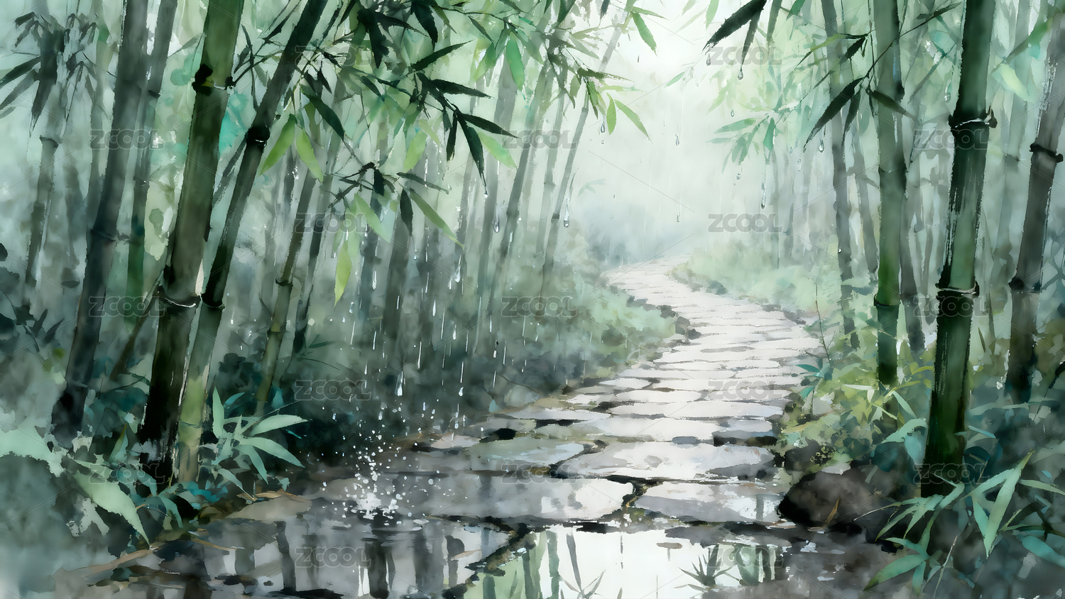 竹林小径,水墨意境
