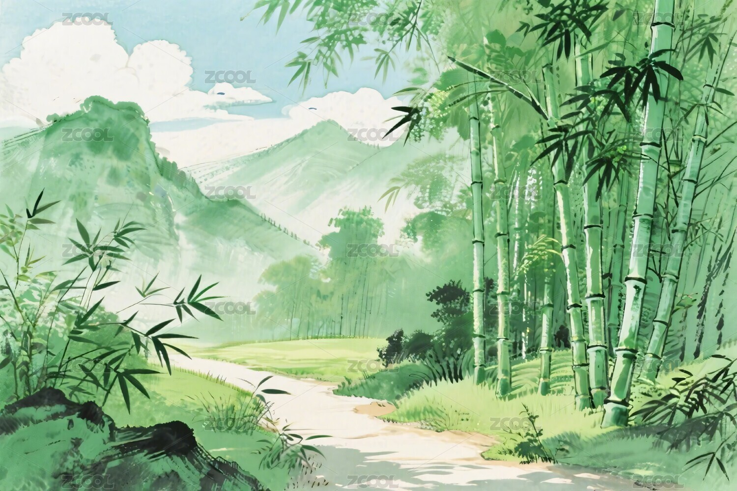 竹林小径山水风景插画