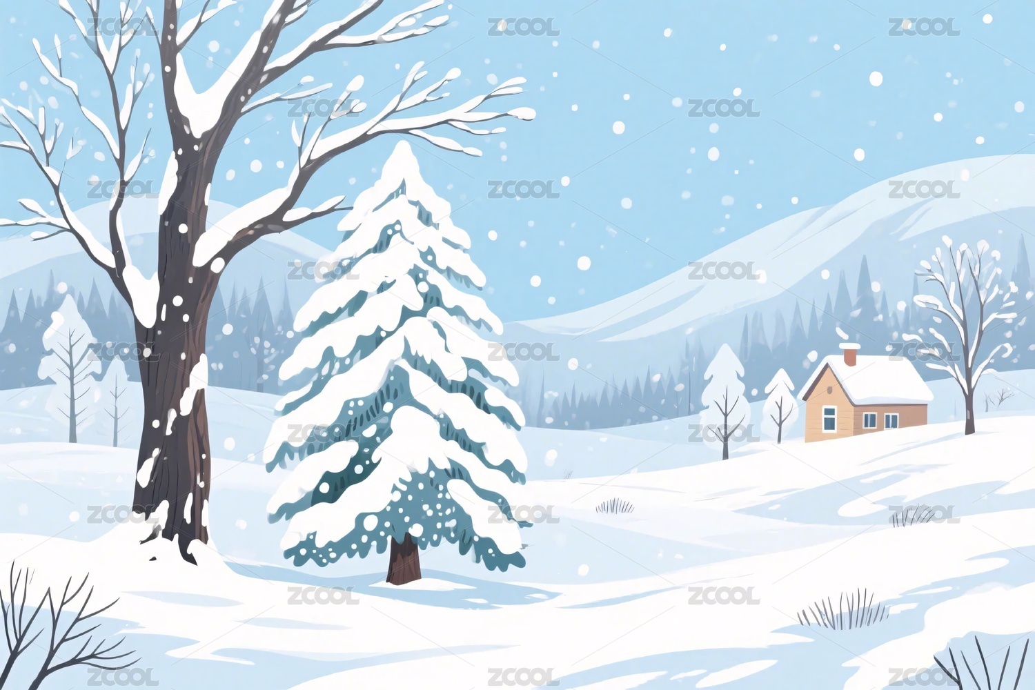雪景,小屋,树木,积雪,雪花,夜空,房屋,森林,冬季,插画