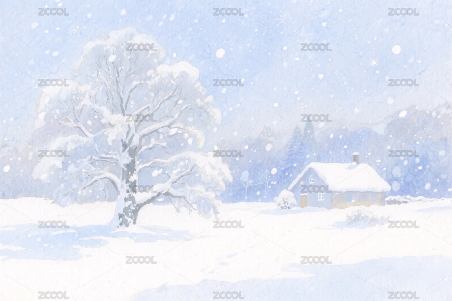 雪景,森林,雪松,树木,冬日,雪地,插画,冬季,白色,雪景画