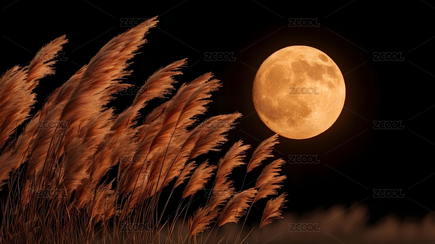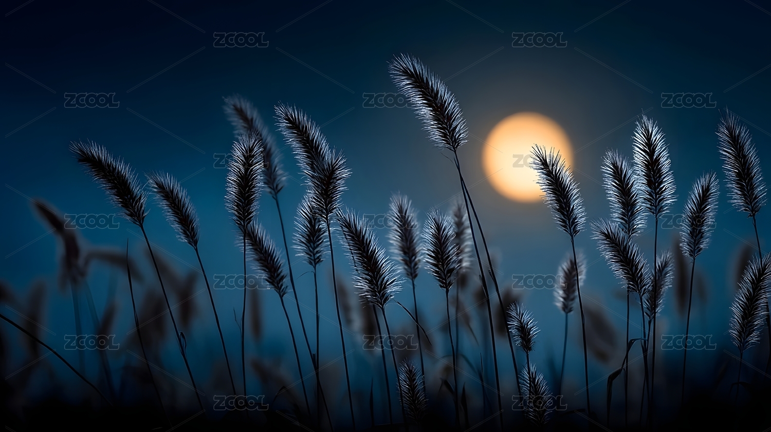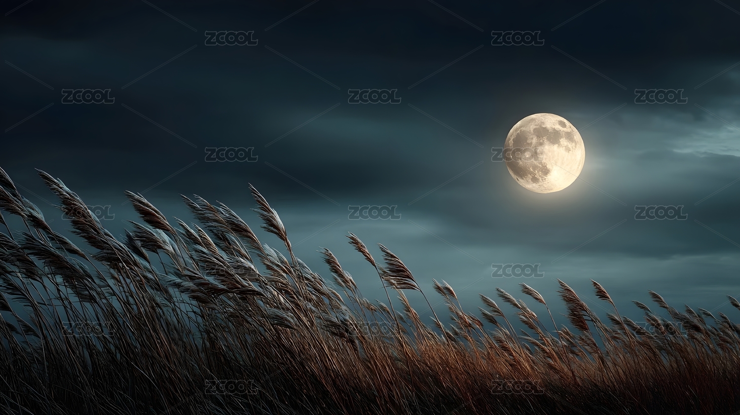 自然,植物,背景,天空,云,景色,月亮,芦苇,夜空,草