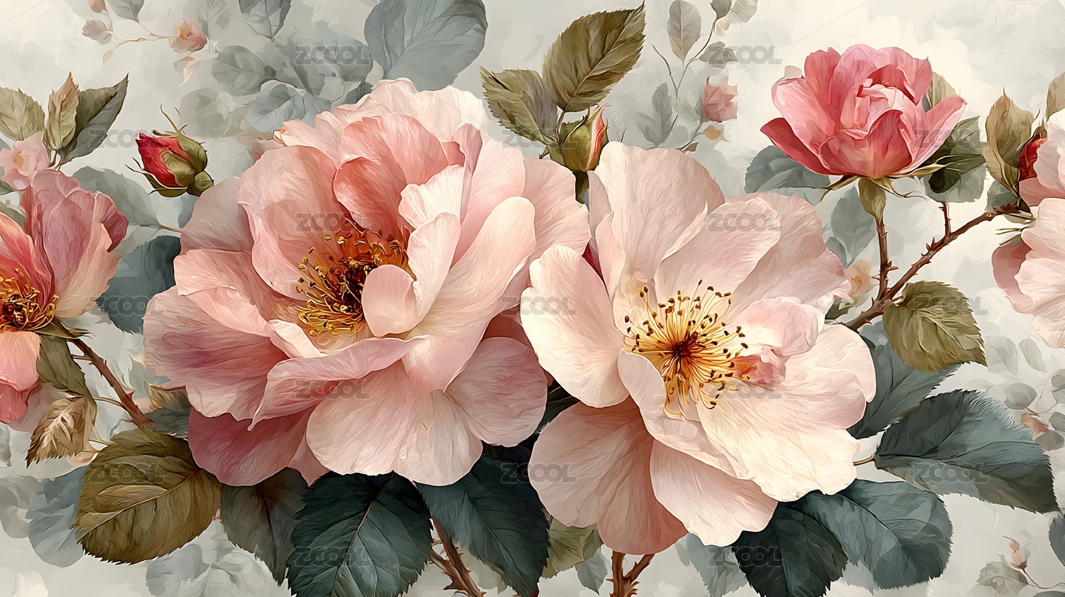 植物,花朵,叶子,背景,图案,装饰,设计,枝干,花蕊,花苞