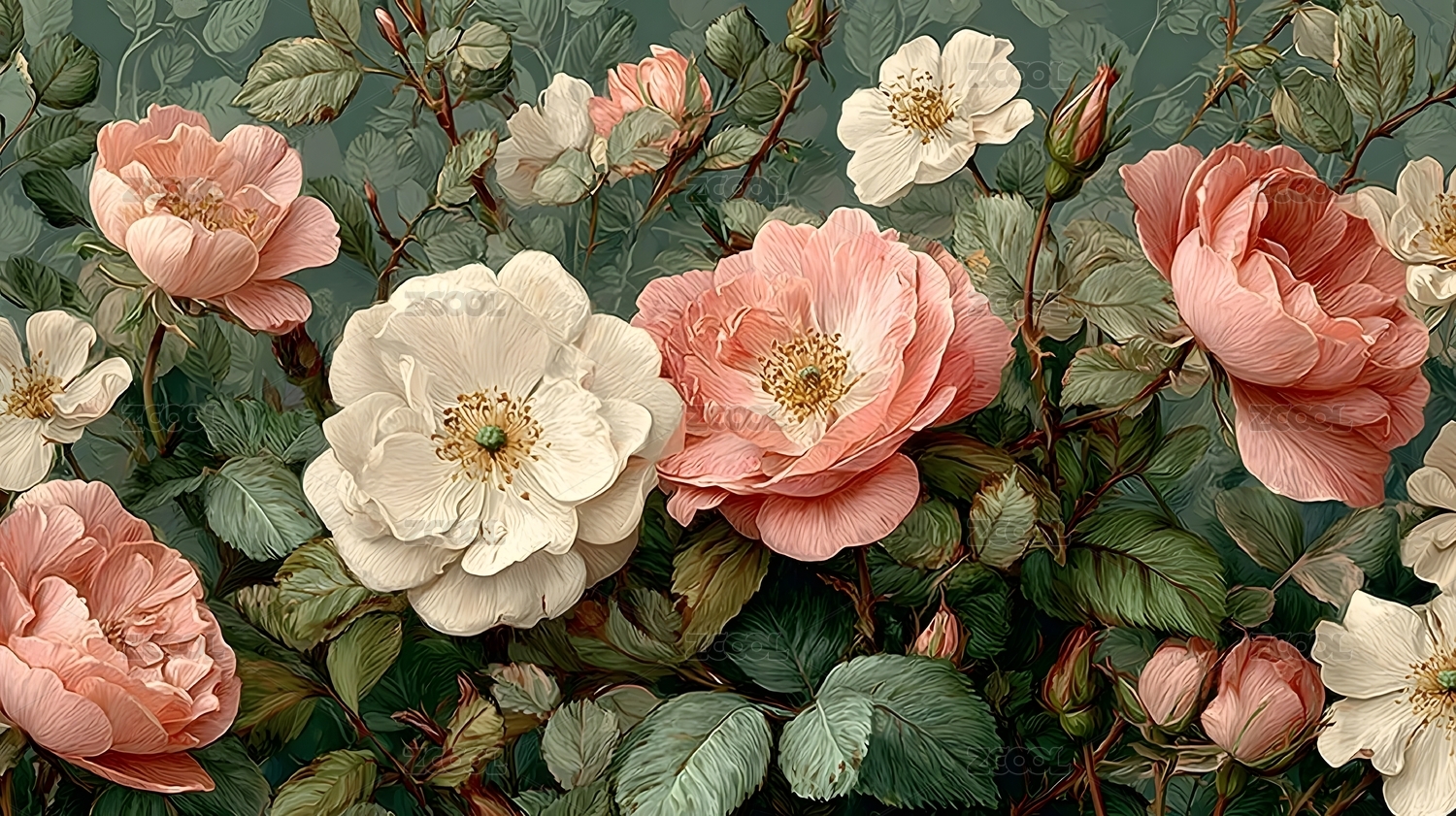 牡丹花盛开花卉图案
