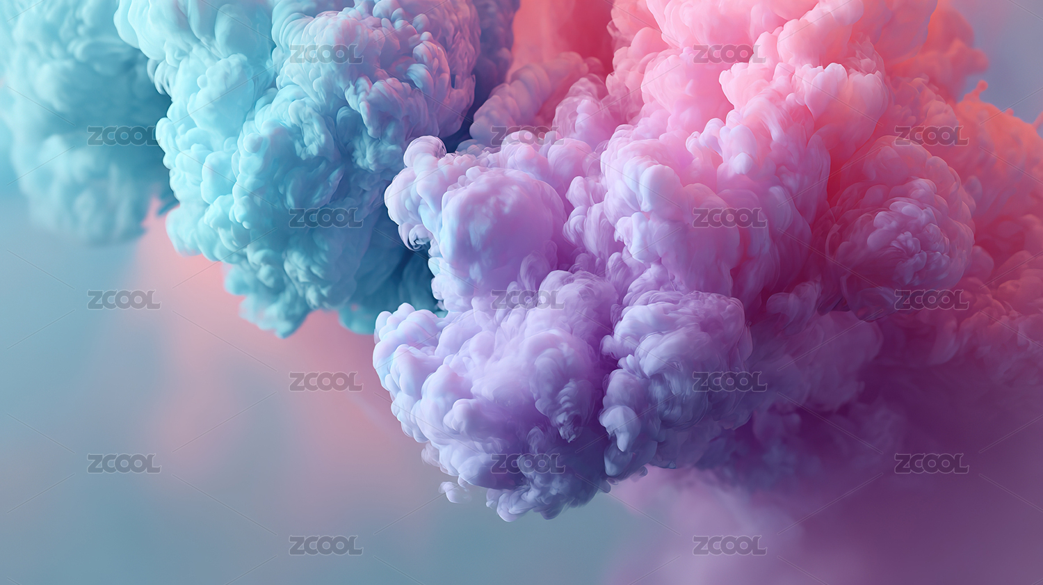粉色与蓝色烟雾交织的梦幻场景