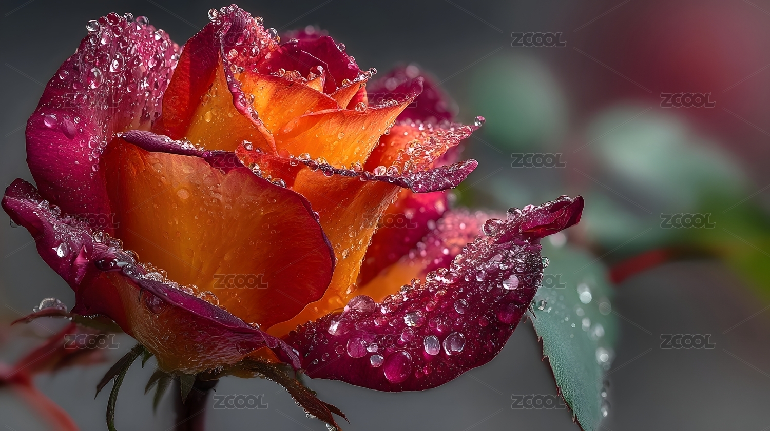 红黄玫瑰特写 晶莹剔透水珠 浪漫唯美