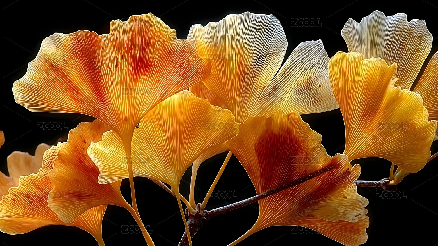 自然,植物,银杏,叶子,叶脉,黄色,枝条,脉络,特写,叶形