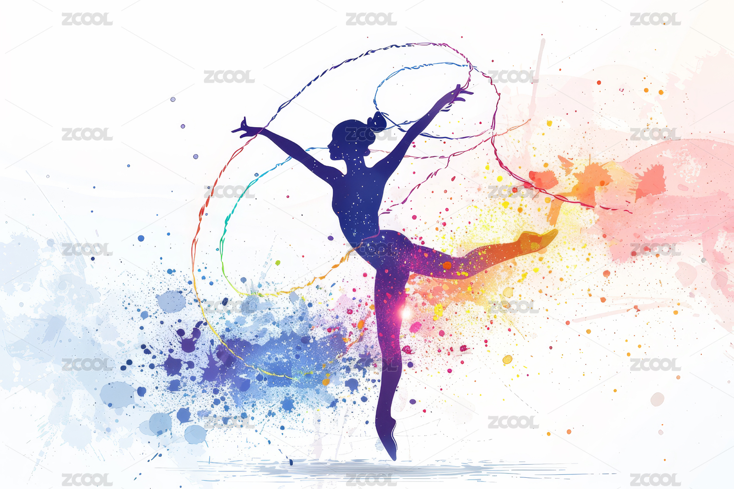 优雅舞者剪影与彩色背景