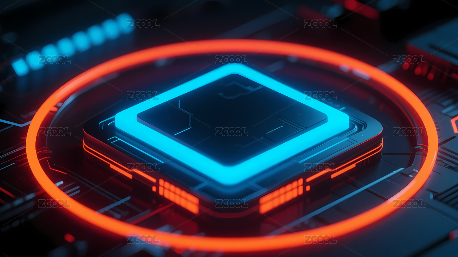 蓝色芯片与红色光圈