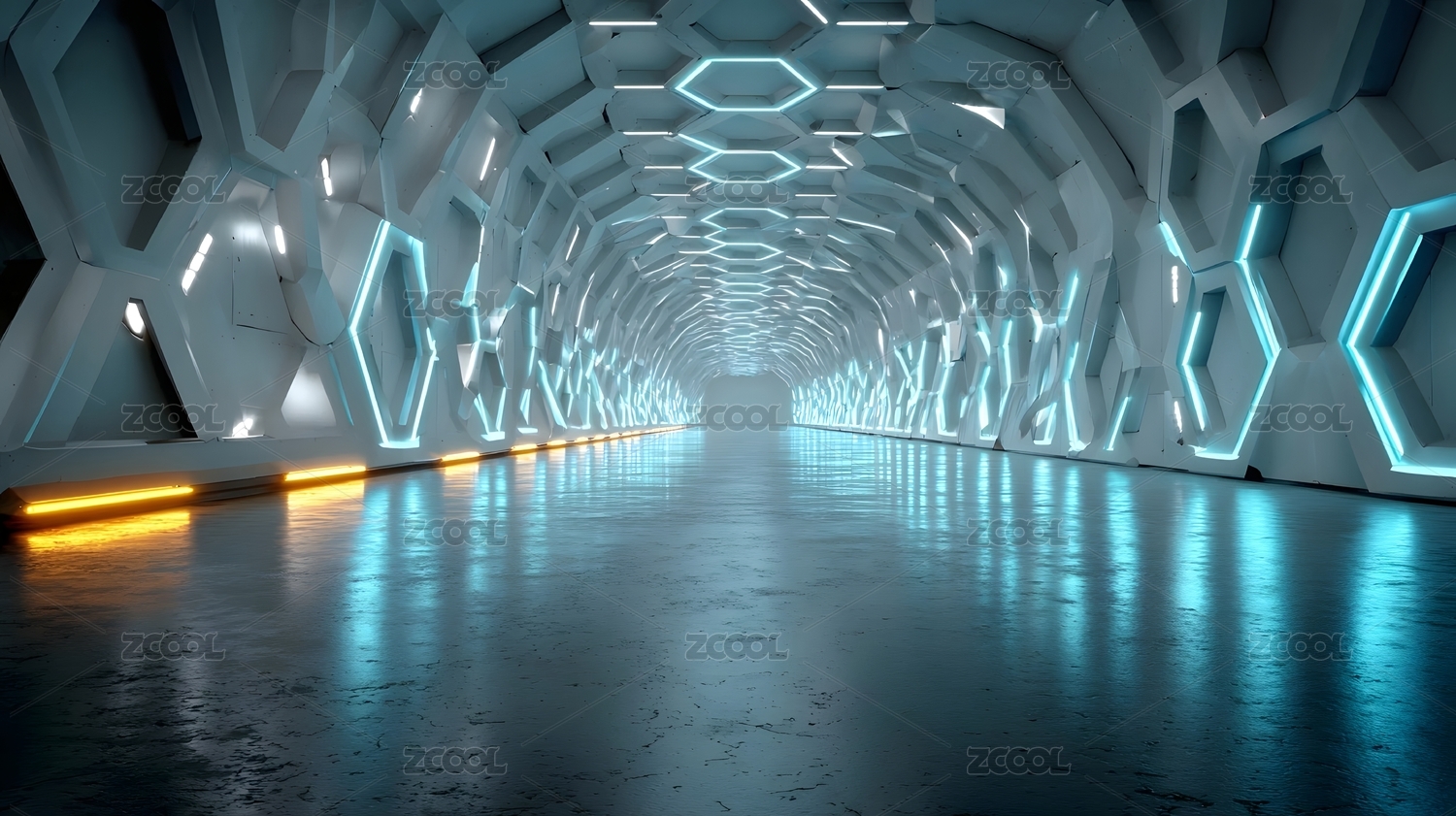 地面,灯光,六边形,科技,未来,圆形,设计,空间,黑暗,现代