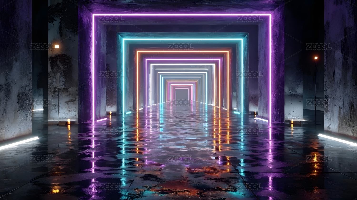 紫色,抽象,科技,未来,走廊,通道,现代,空间,红色,深色