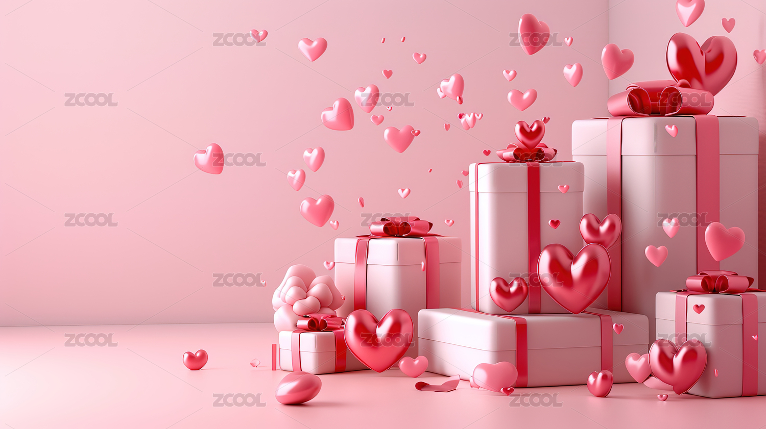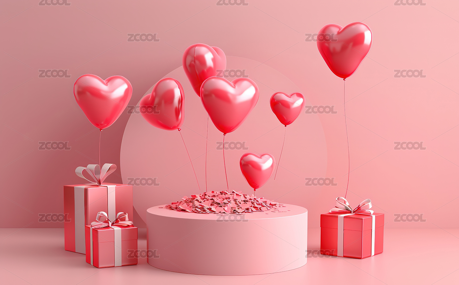粉色心形气球与礼盒