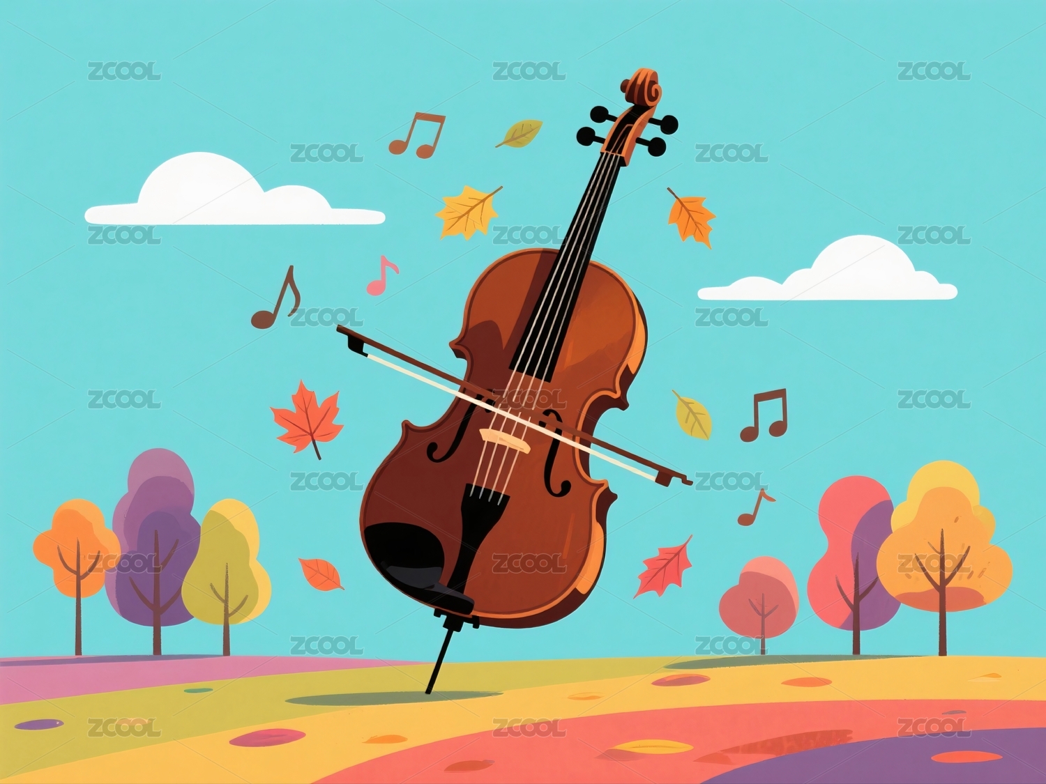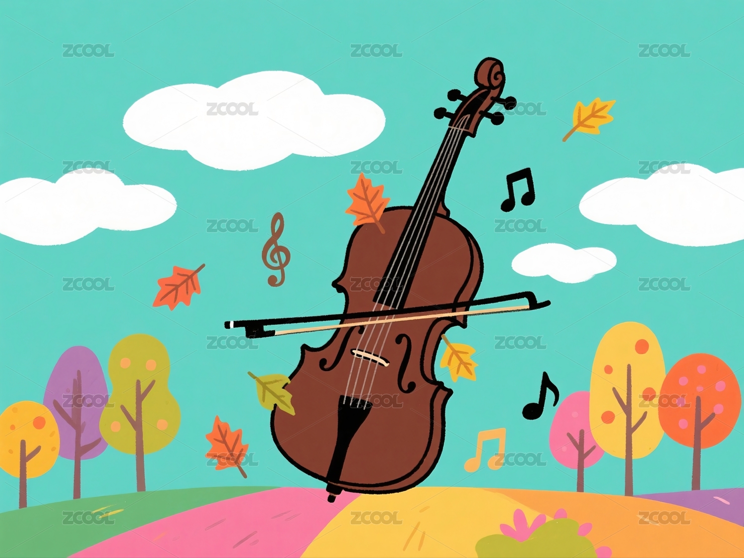 景观,草地,树木,绿色,黄色,棕色,自然,艺术,简单,音符