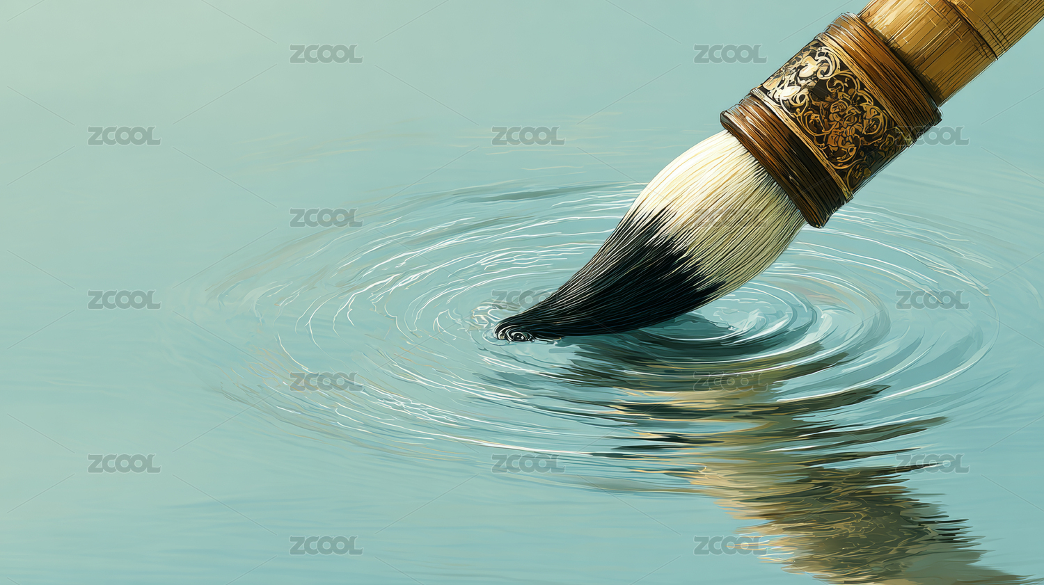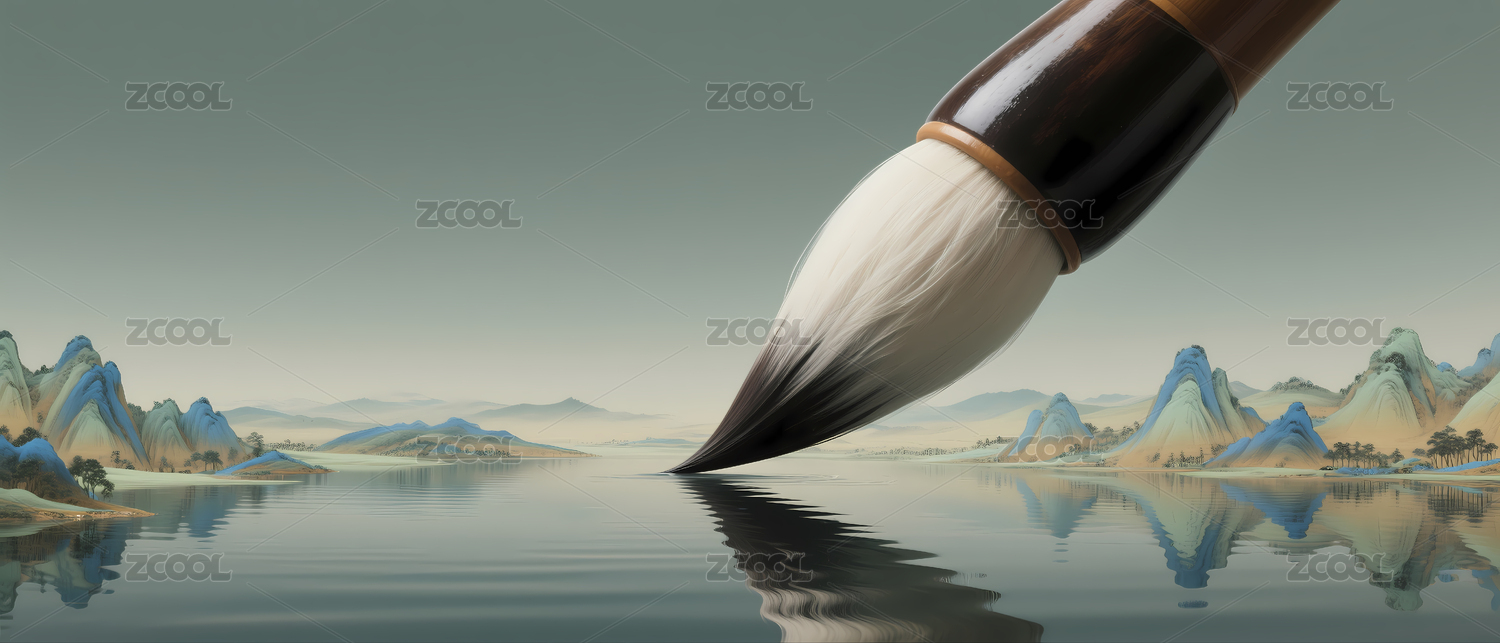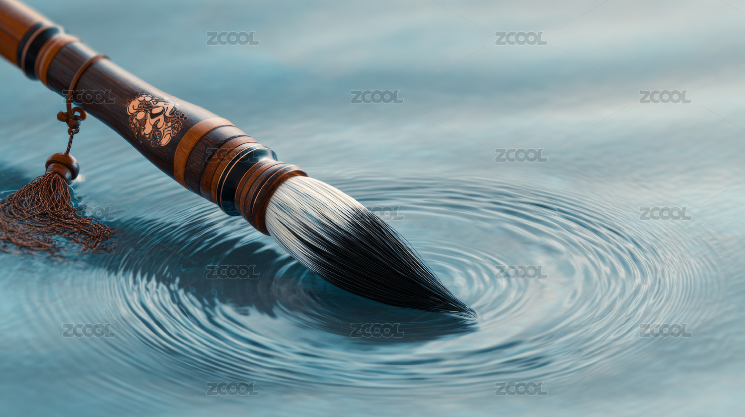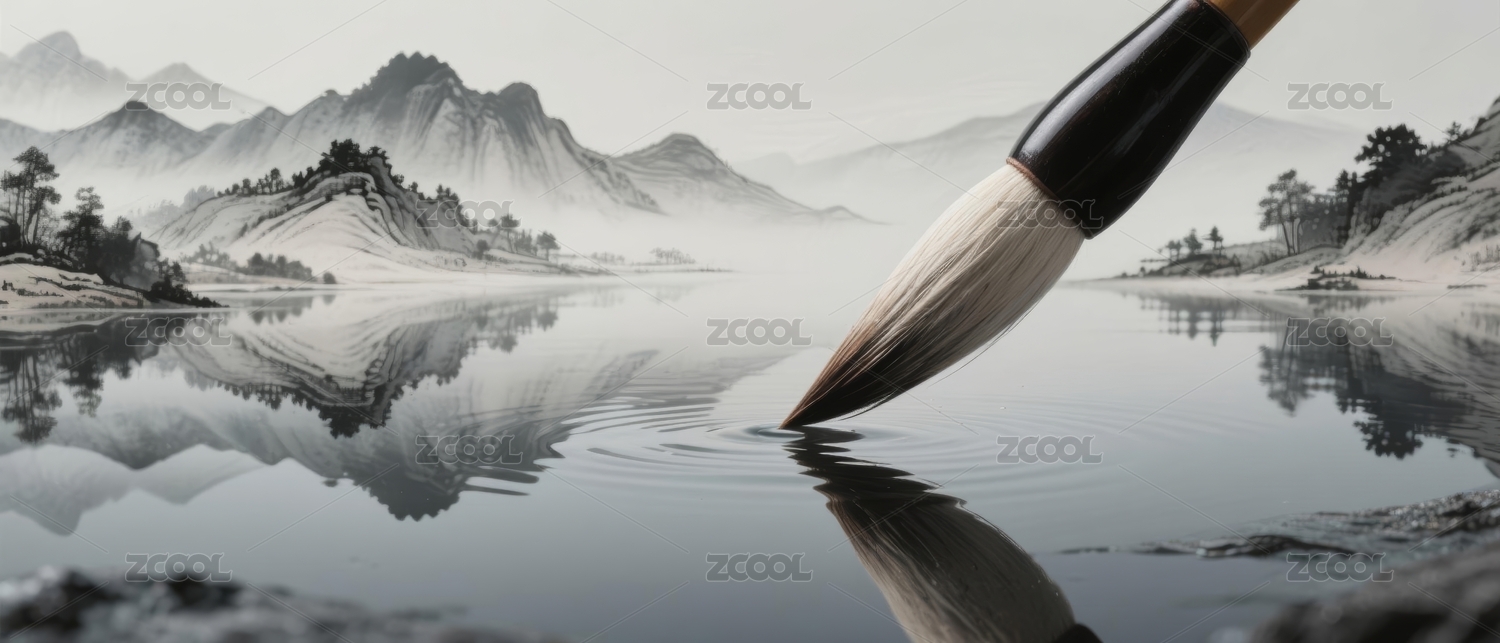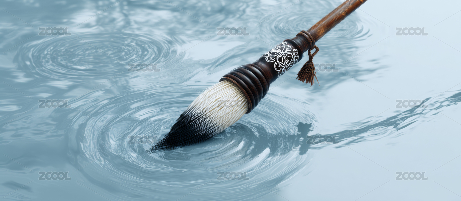 充满禅意的毛笔轻触水面泛起涟漪