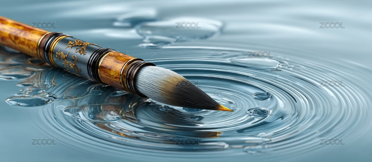 毛笔与水的涟漪