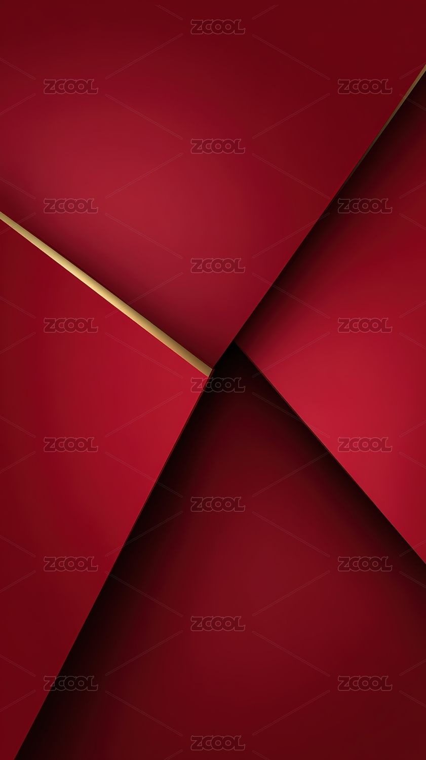 红色几何抽象背景金色线条