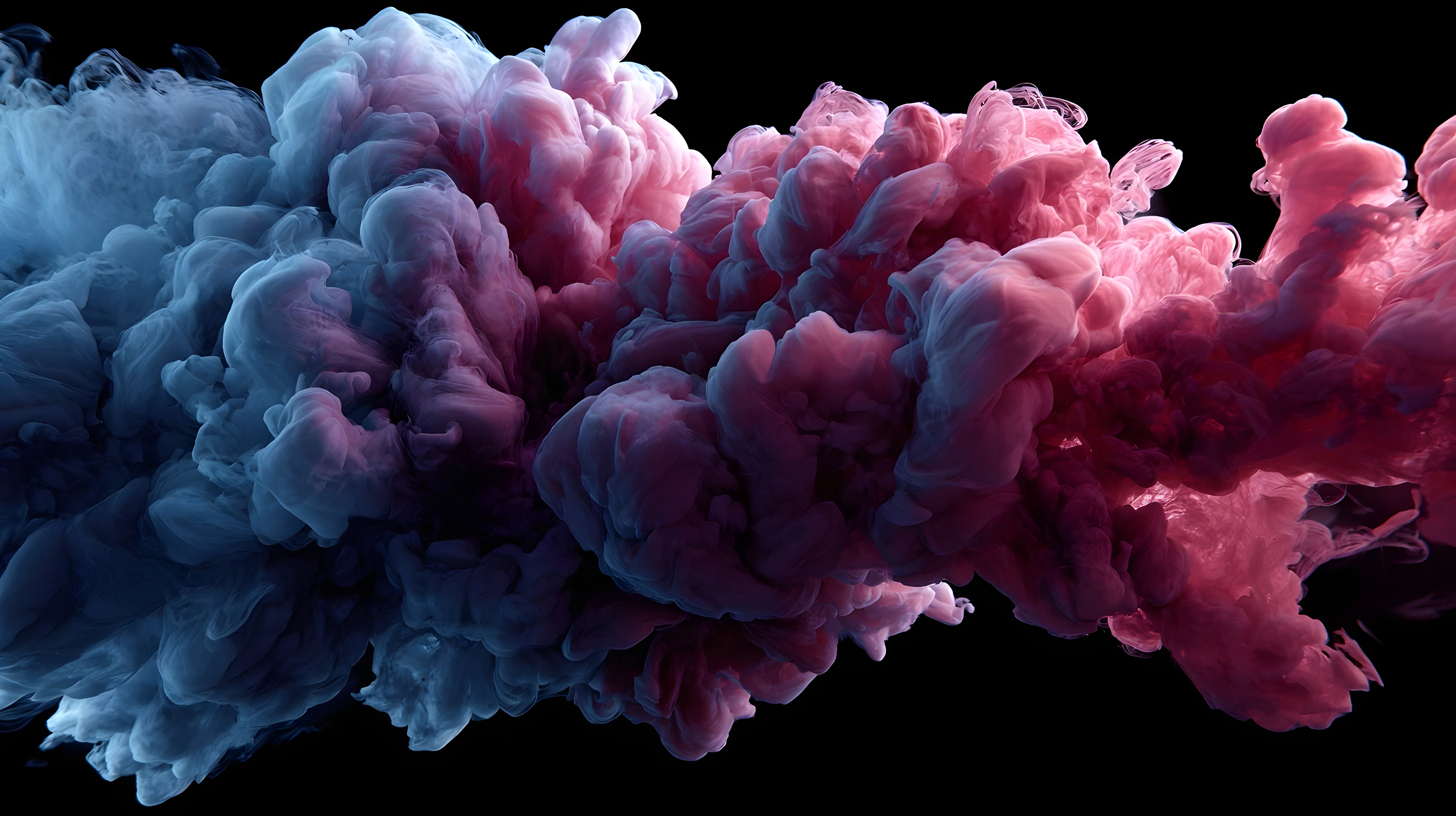 蓝粉烟雾交织的抽象画面