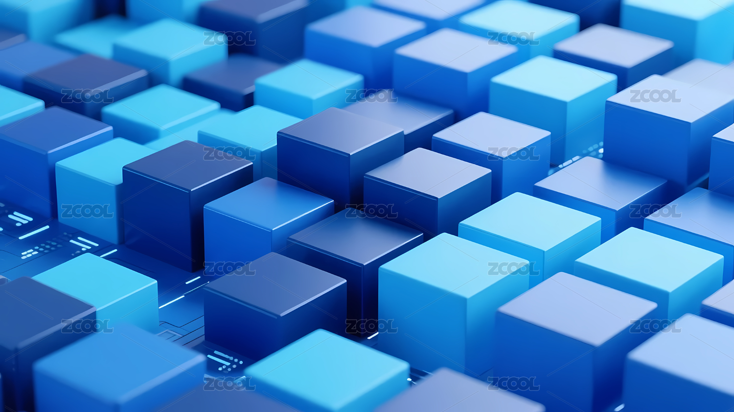 现代科技感的蓝色立方体抽象图案