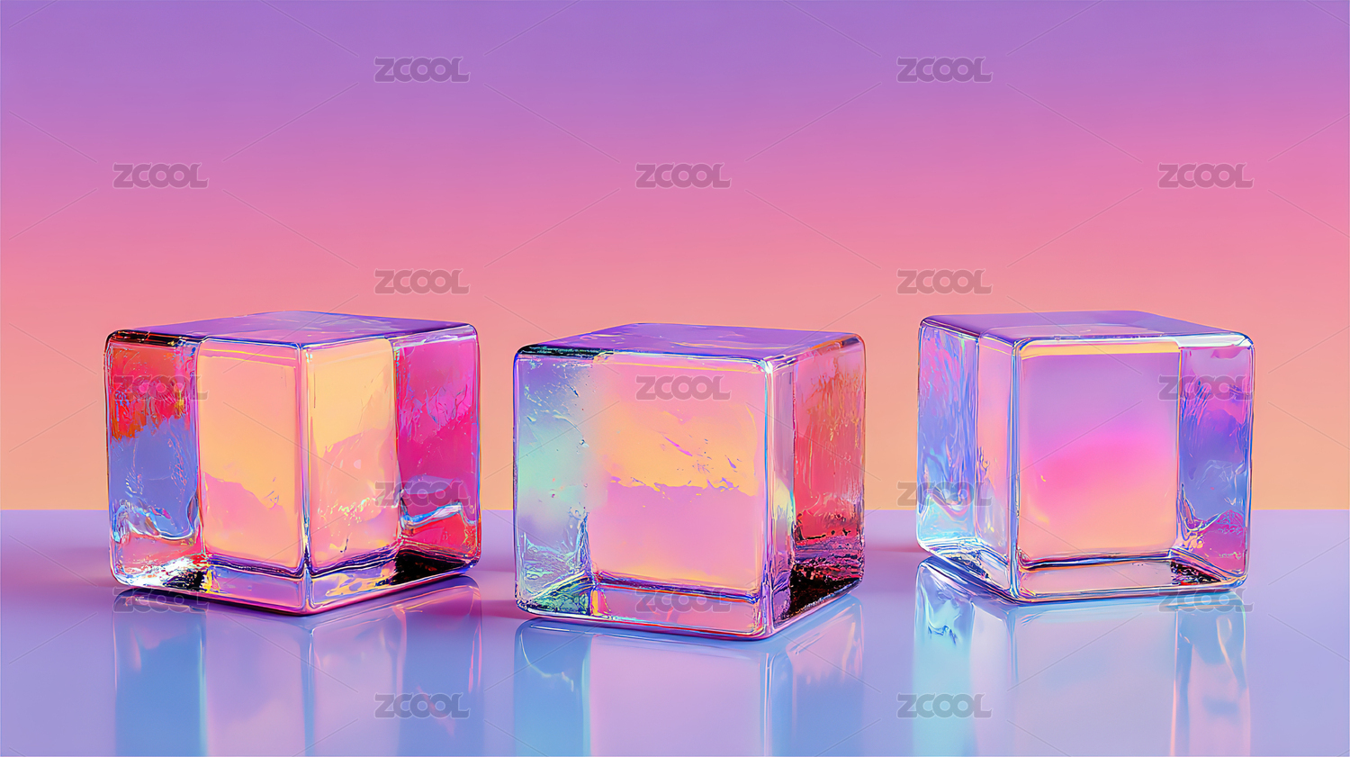 粉色冰块堆叠晶莹剔透梦幻蓝背景