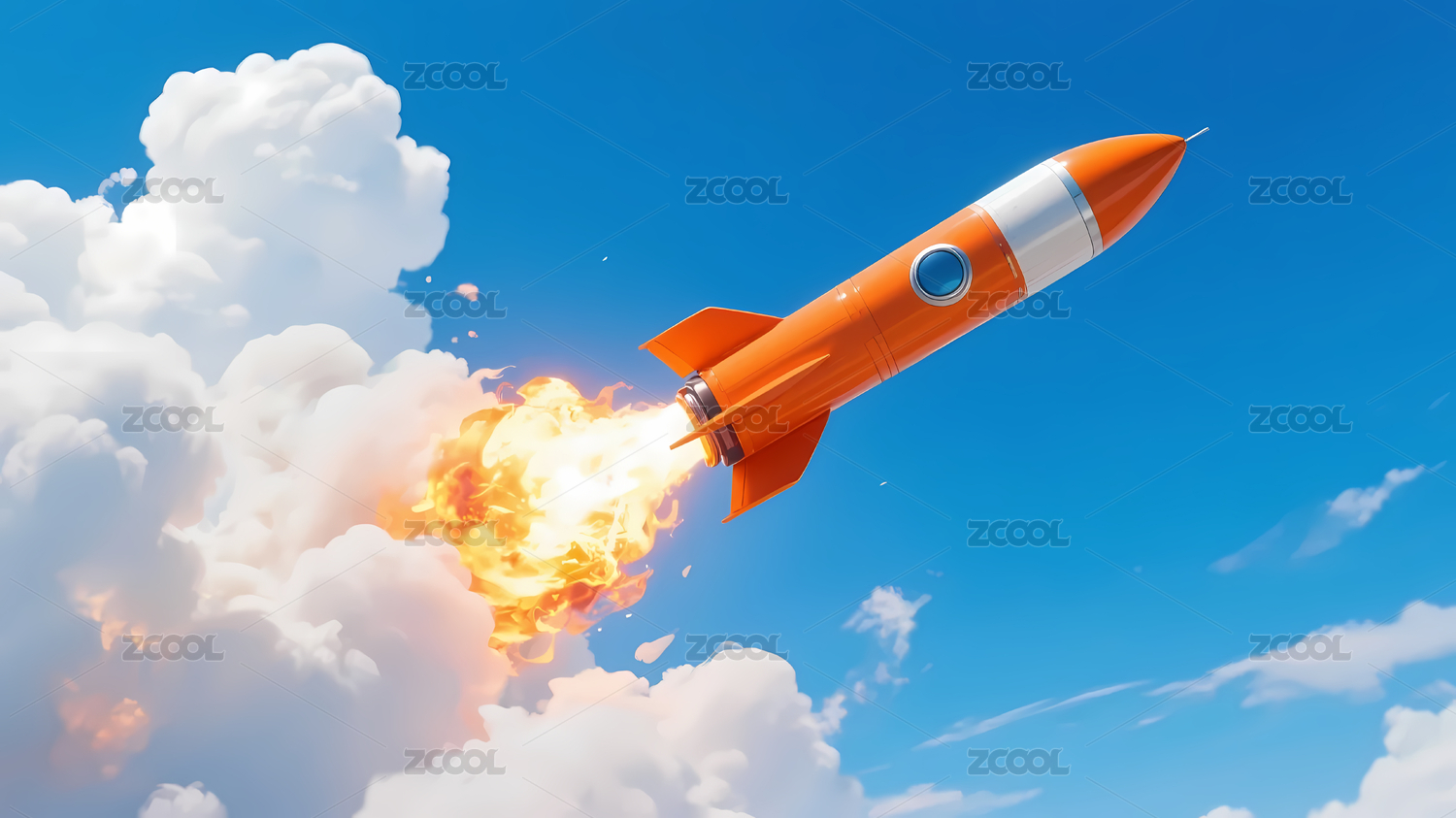 火箭,发射,火焰,科技,蓝天,白云,太空,喷射,橙黄,动力