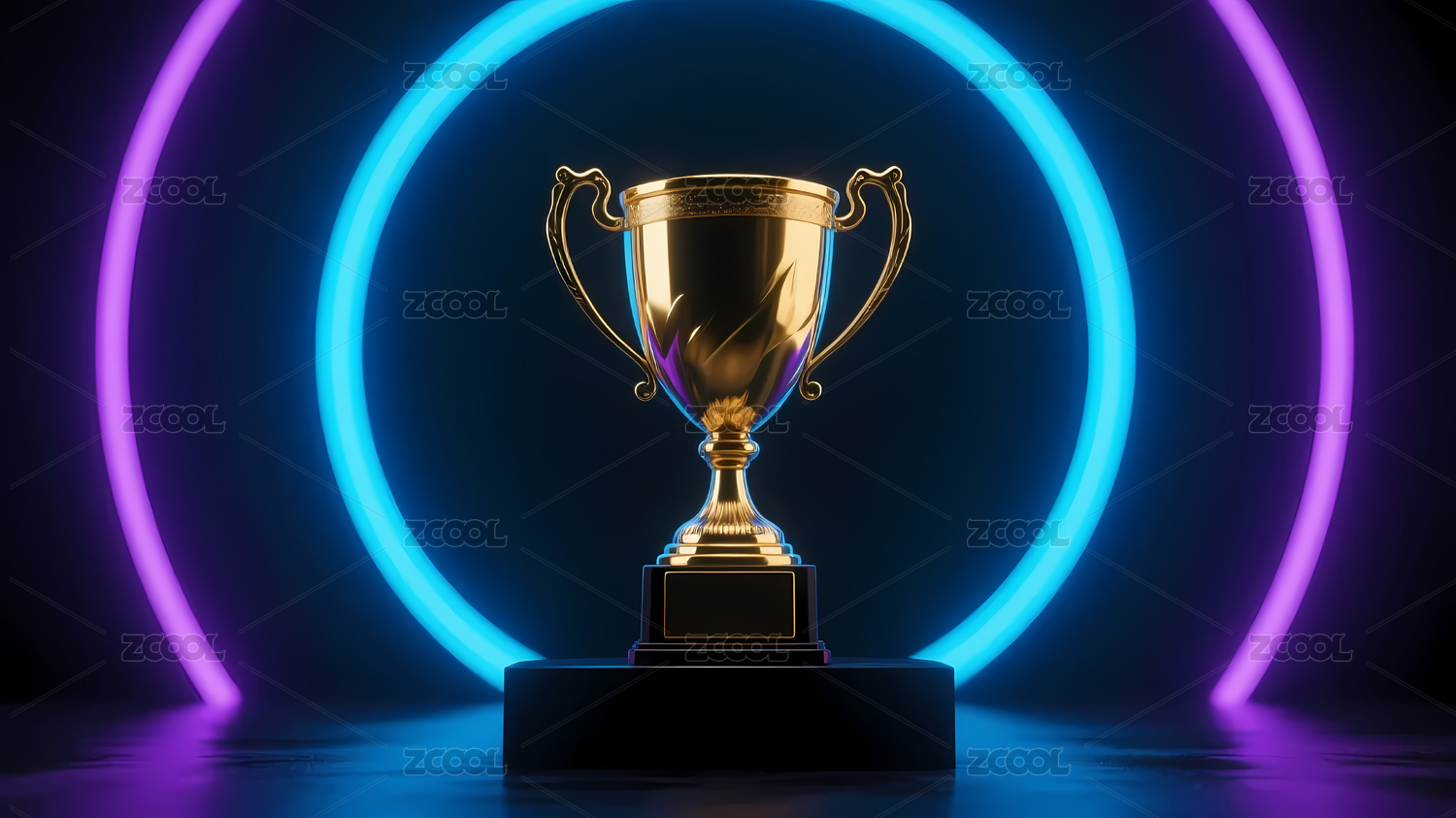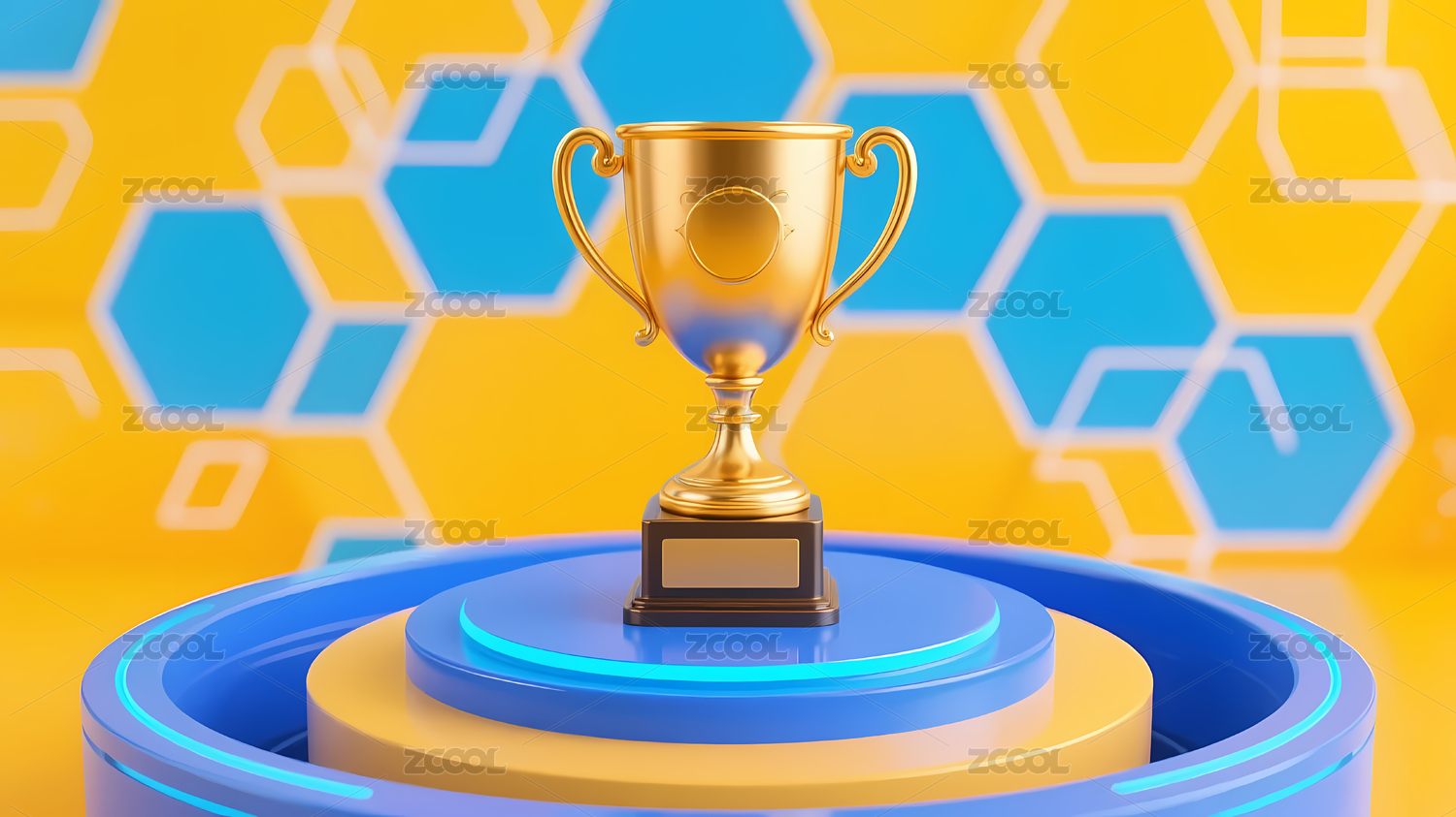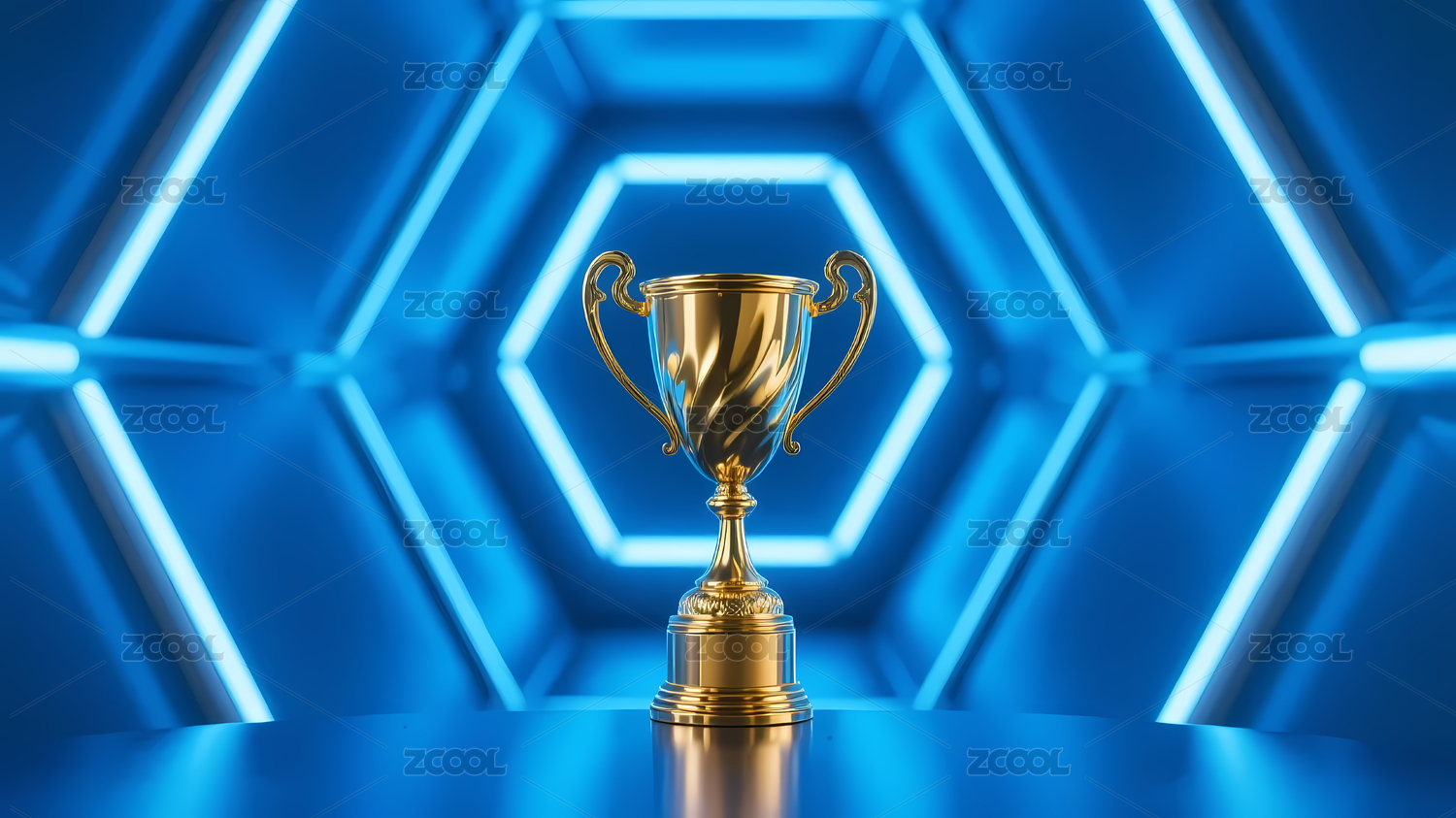 蓝色,背景,科技,未来,金色,灯光,六边形,奖杯,中央,结构