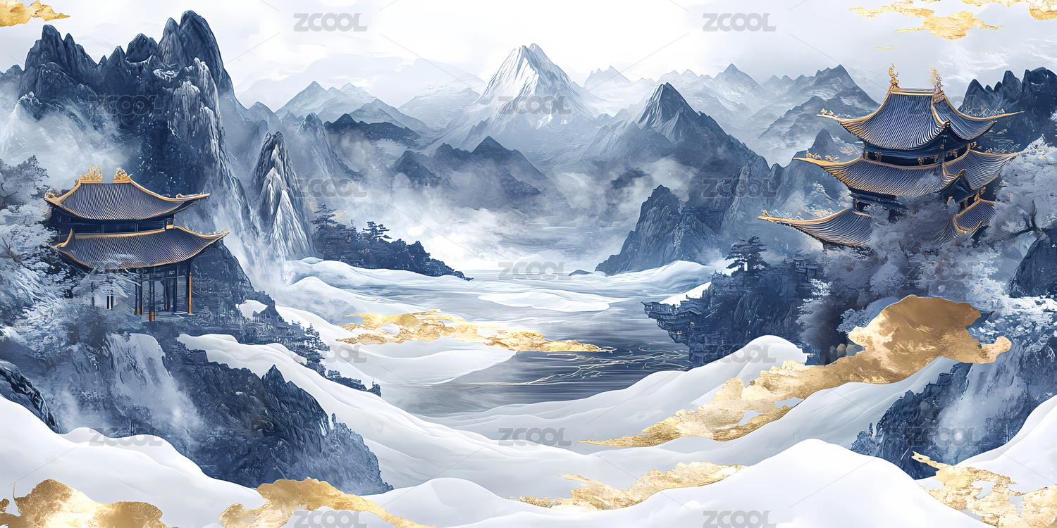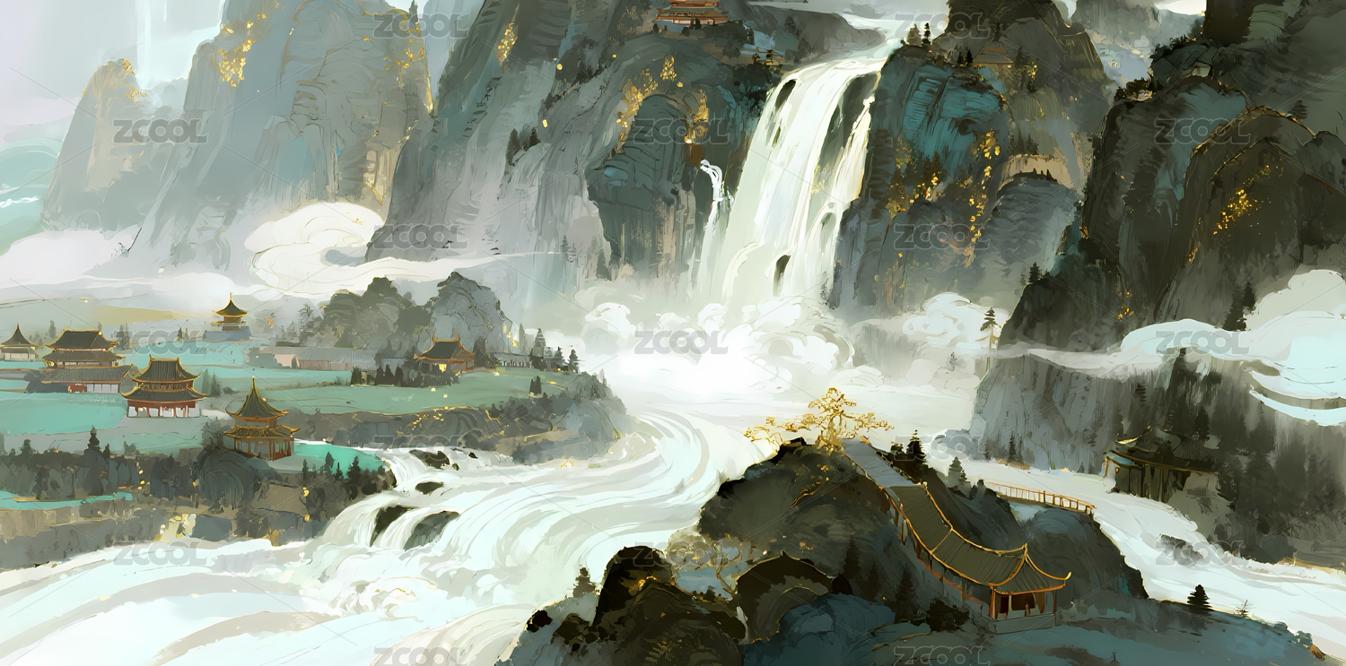 建筑国风山水场景
