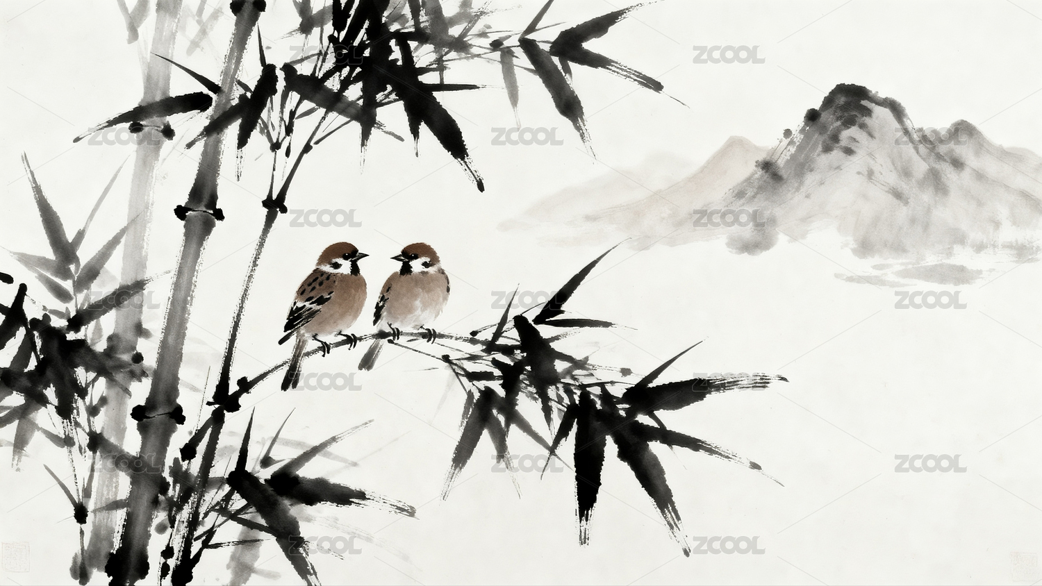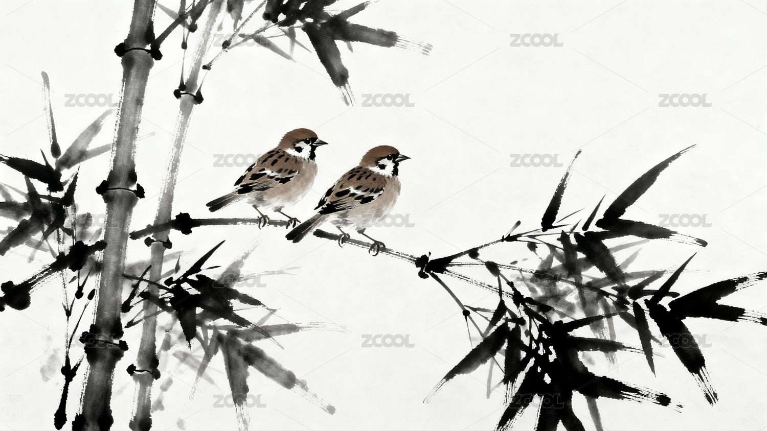 两只色彩斑斓的鹦鹉栖息在竹枝上