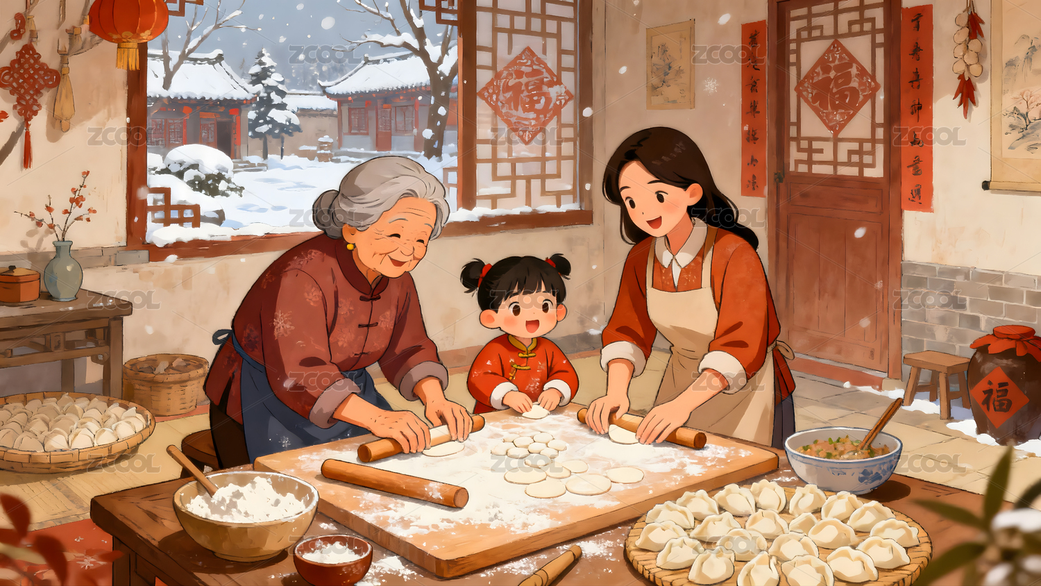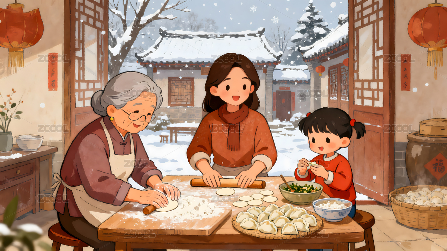 饺子,春节,家庭,团圆,年味,传统,美食,新年,亲情,喜庆