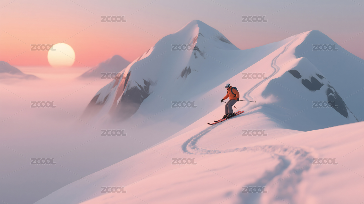 雪山,滑雪,日落,山峰,冬季,户外,运动,探险,挑战,滑雪者