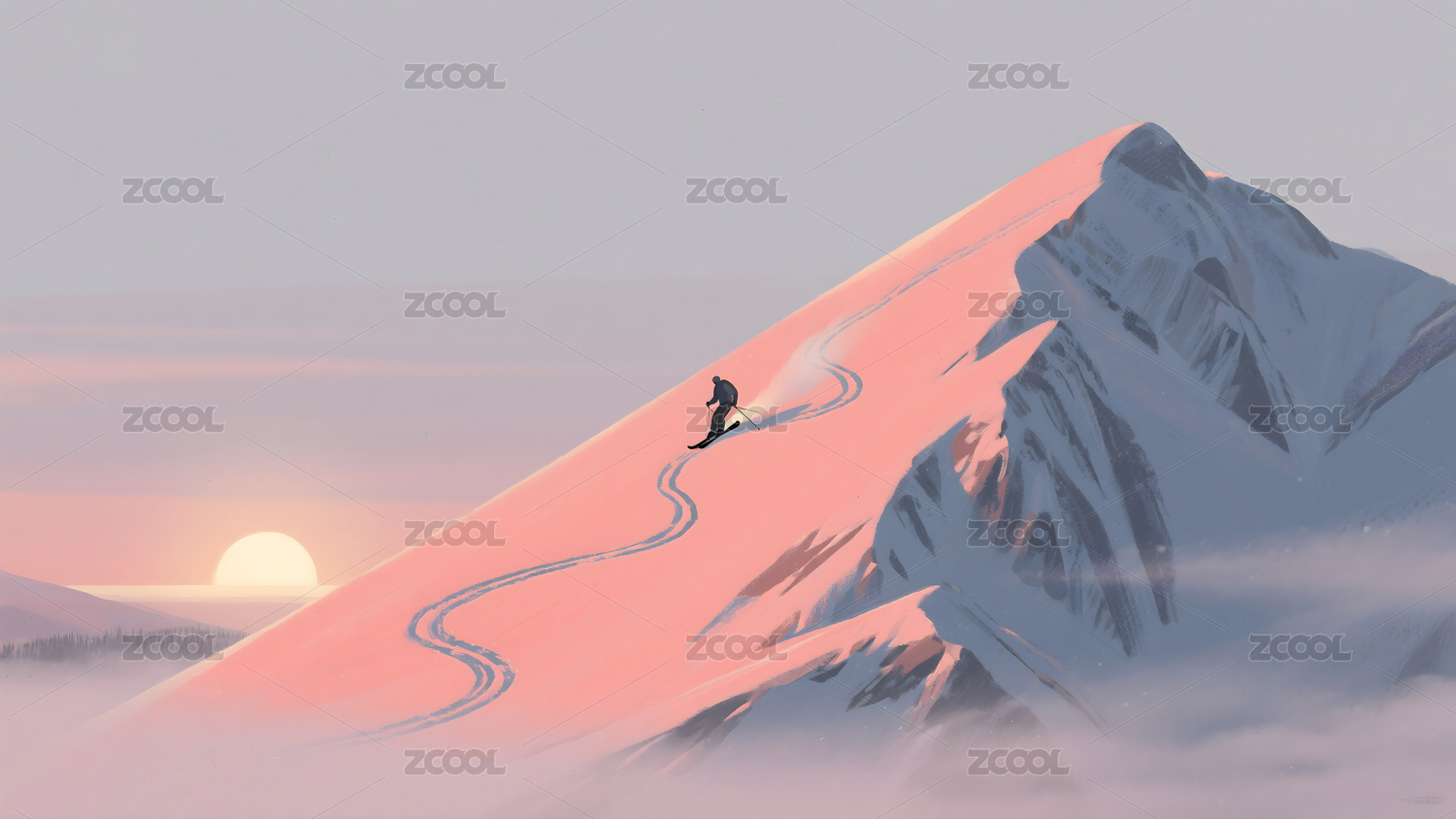冬季雪景雪山插画
