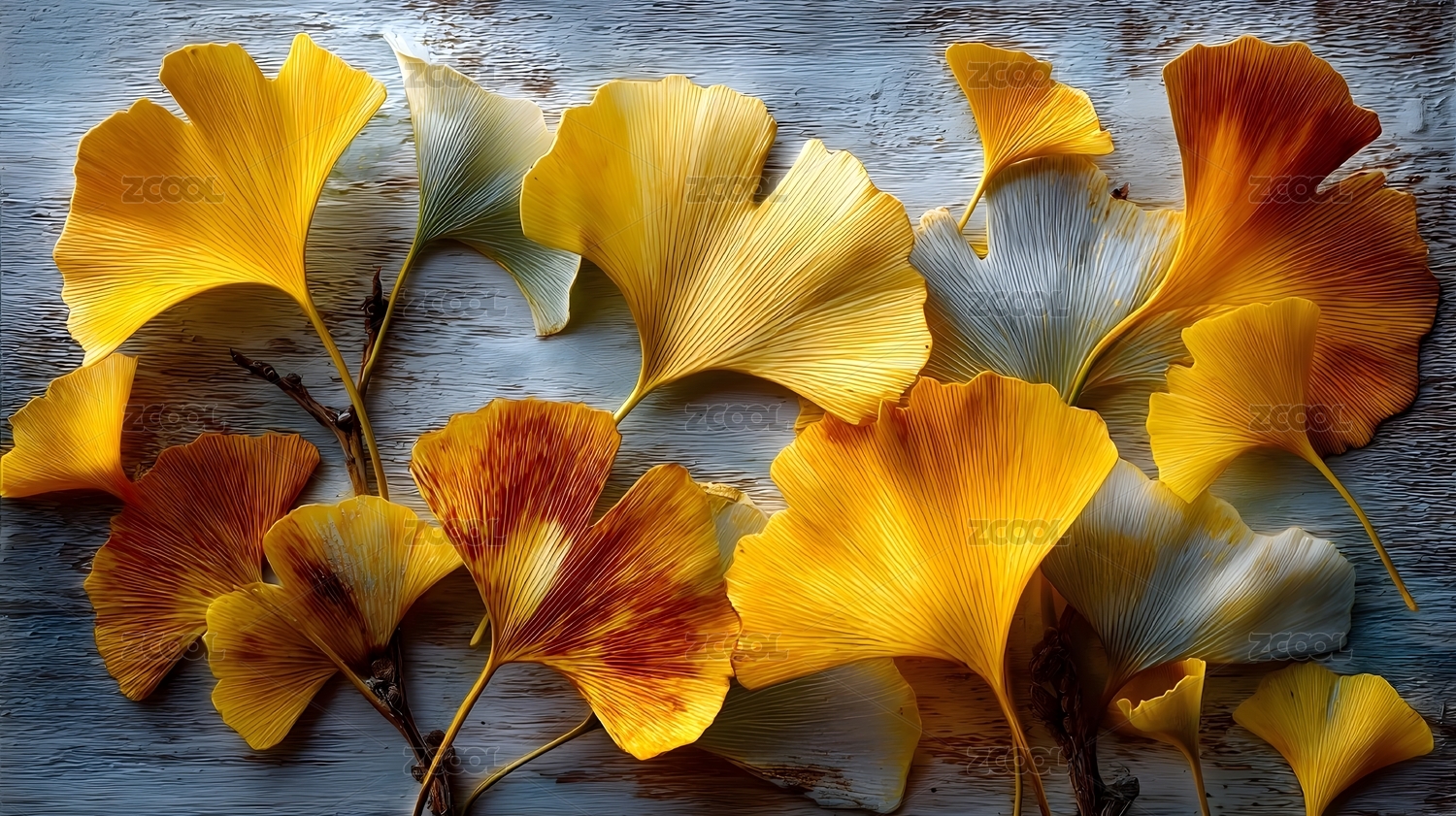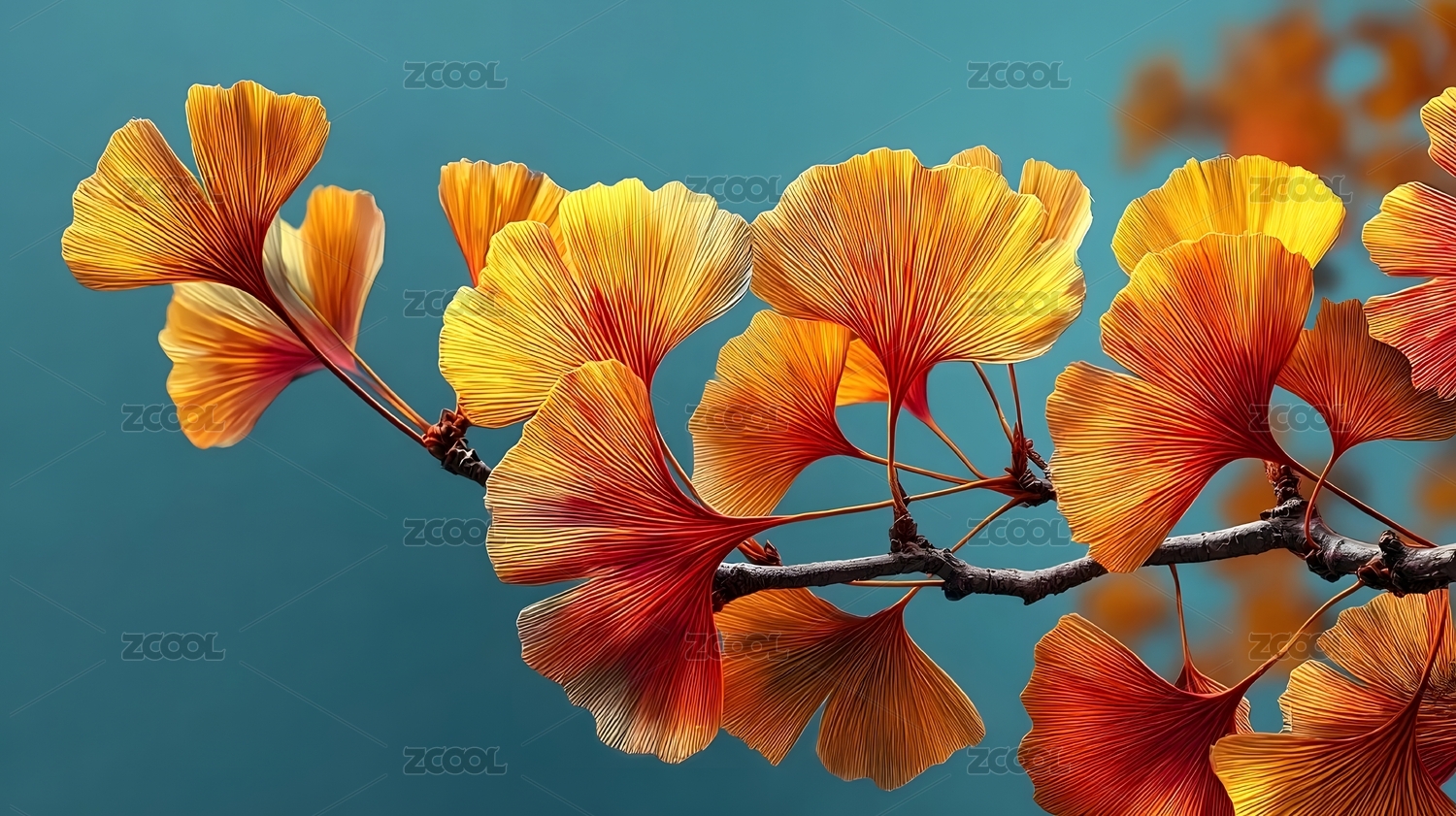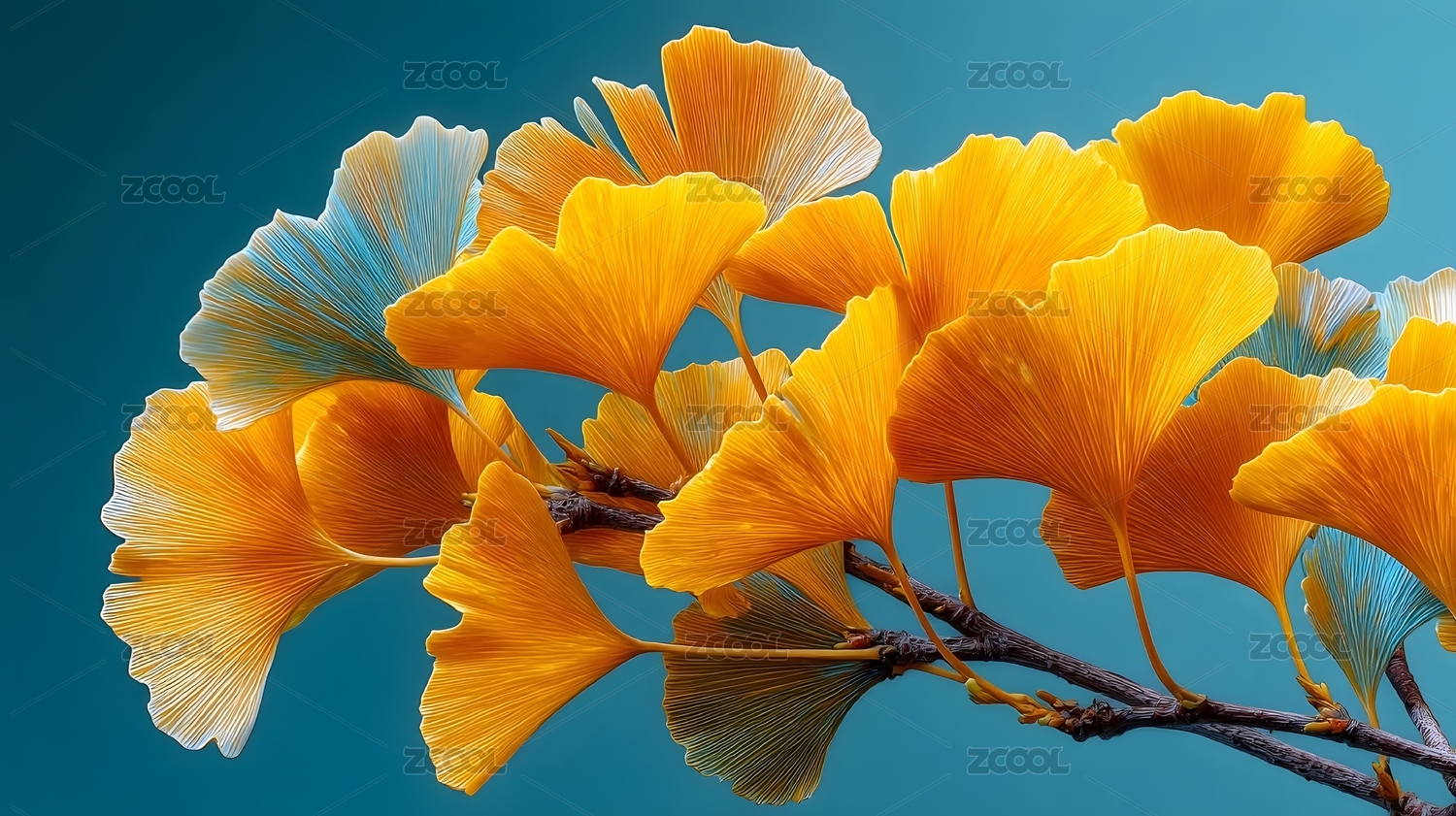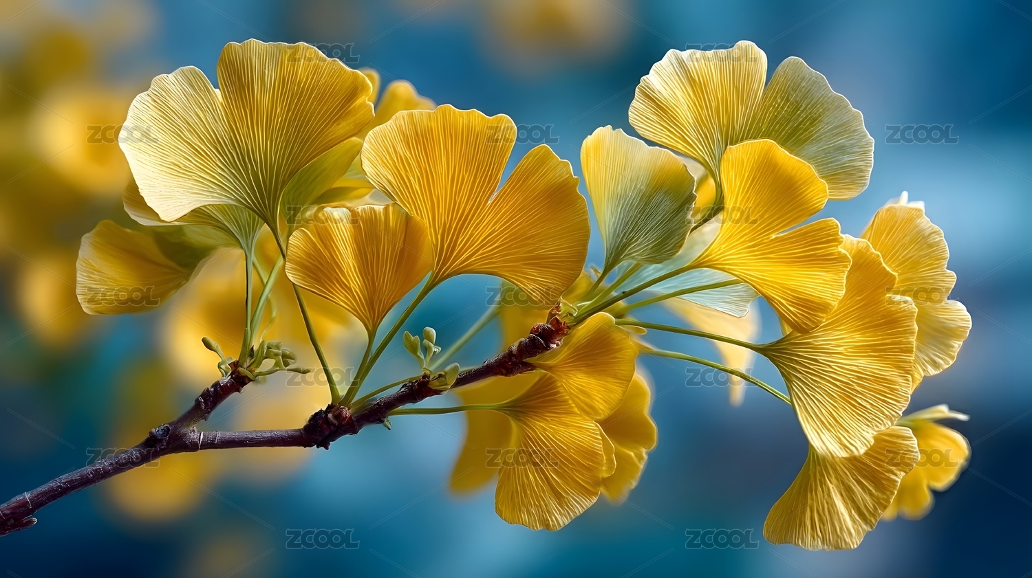 金黄,自然,植物,叶子,枝条,黄色,银杏,秋天,叶脉,扇形