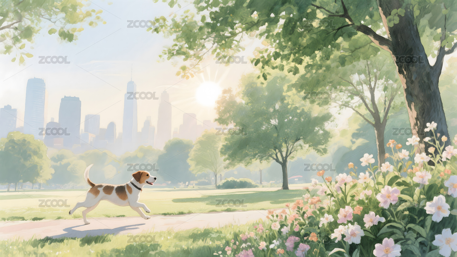 城市公园里的奔跑萌宠