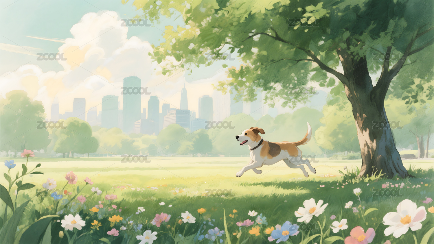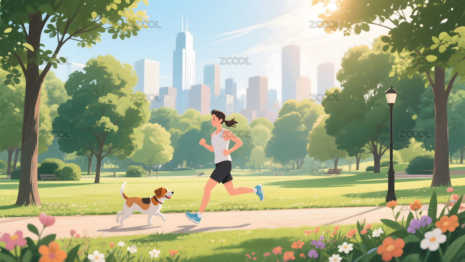 公园,跑步,城市,健康,运动,晨跑,宠物,生活,方式,草地