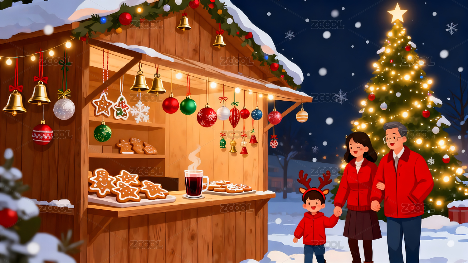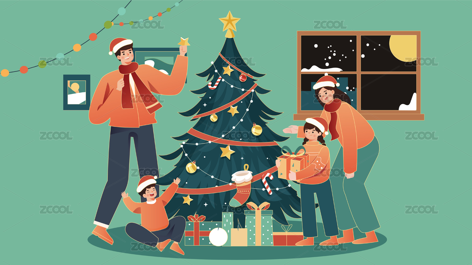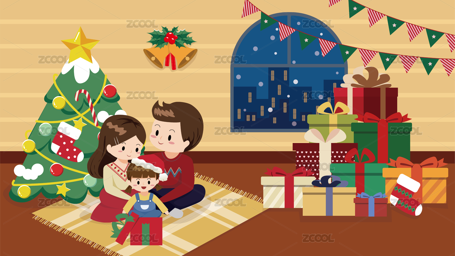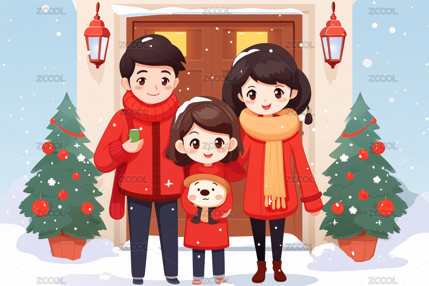 圣诞节,家庭,礼物,雪景,小屋,圣诞树,亲情,节日,冬季,装饰