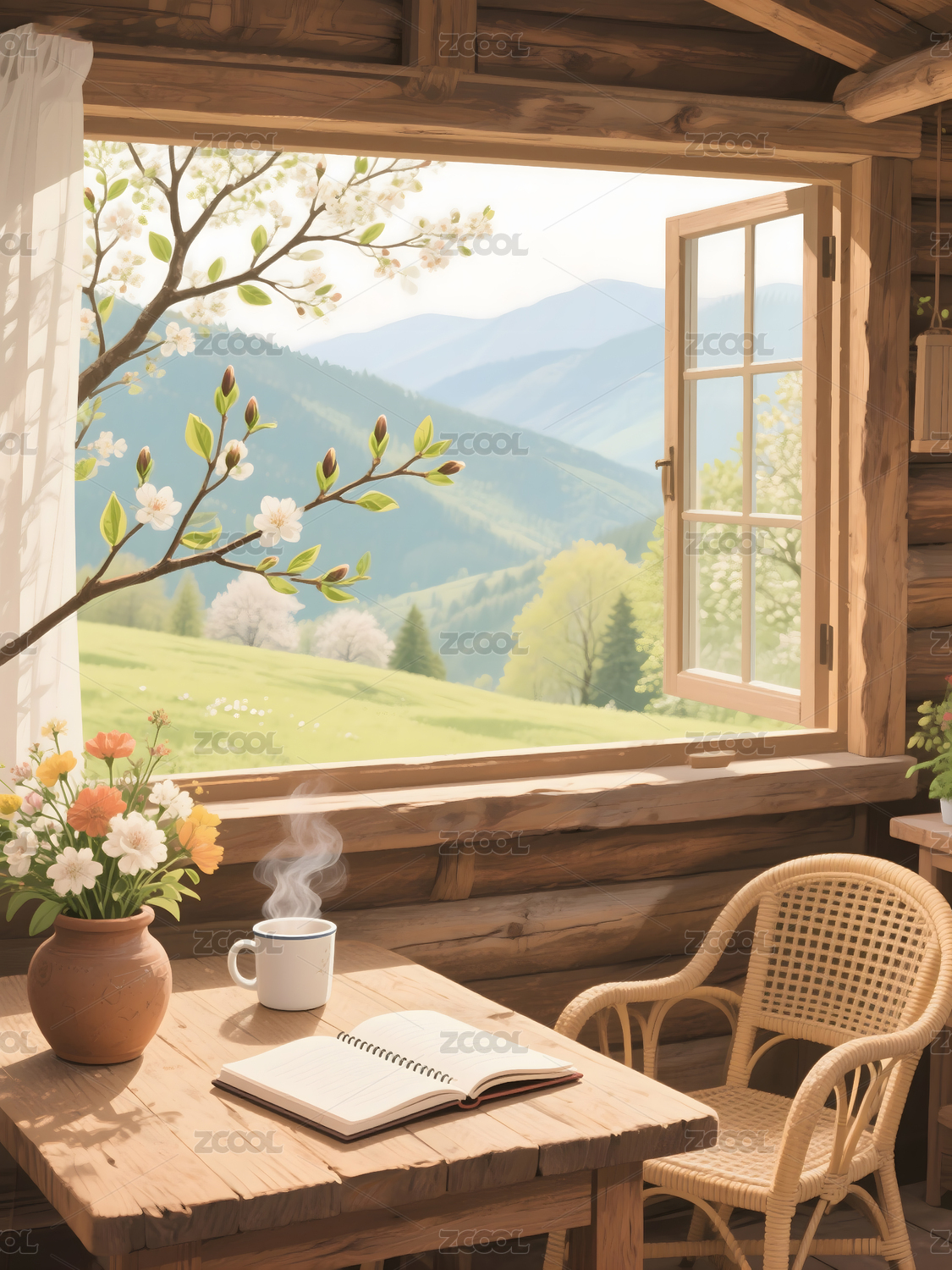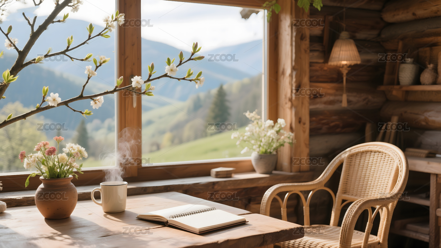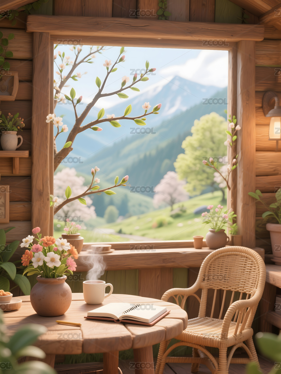 木屋,田园,乡村,春日,山景,自然,清新,宁静,书籍,花瓶