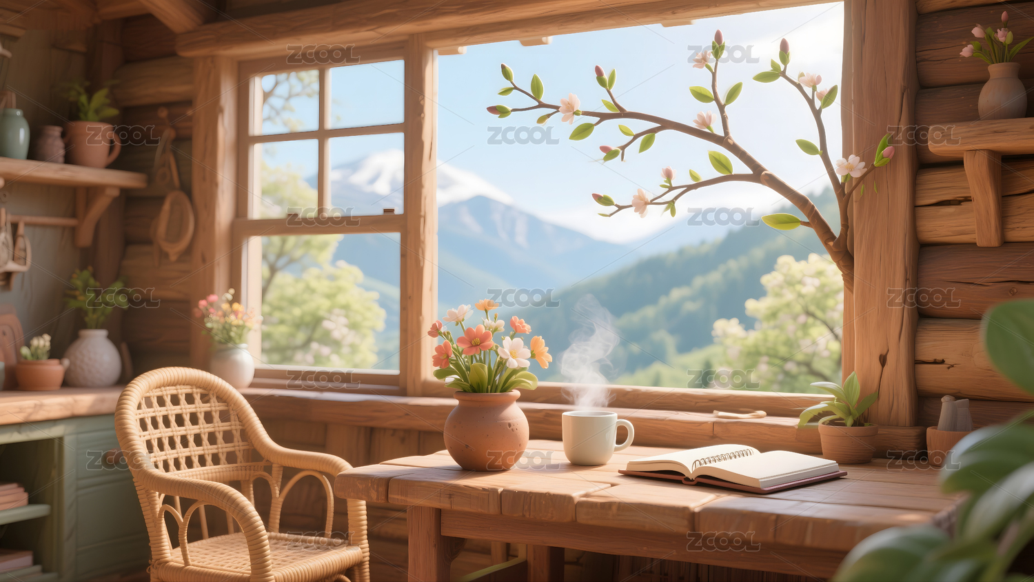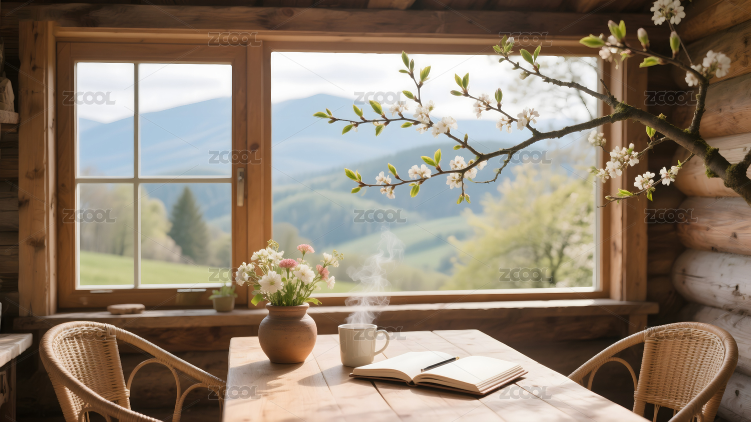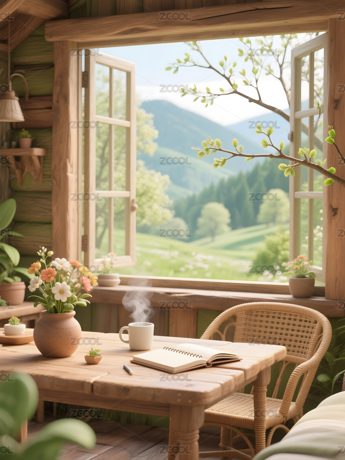 木屋,田园,乡村,春日,山景,自然,清新,宁静,书籍,花瓶
