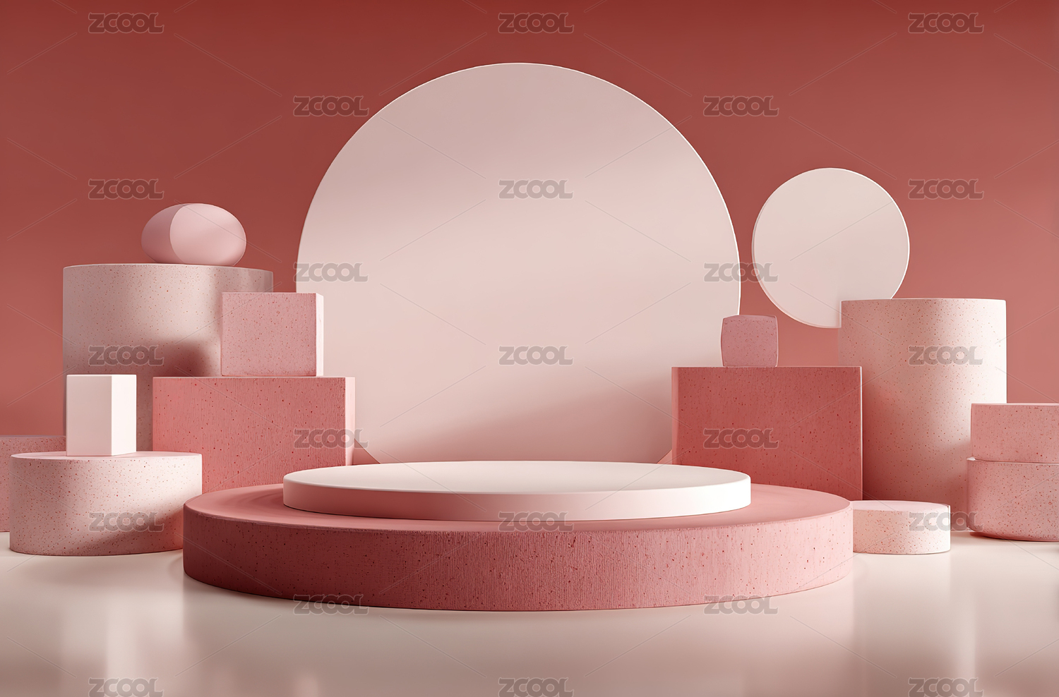 粉色几何体构成的简约艺术场景
