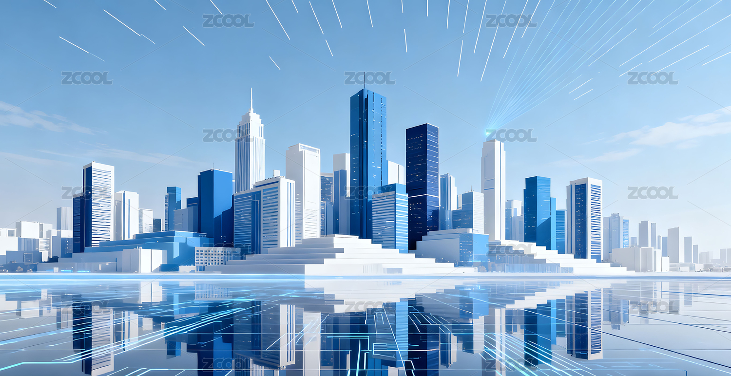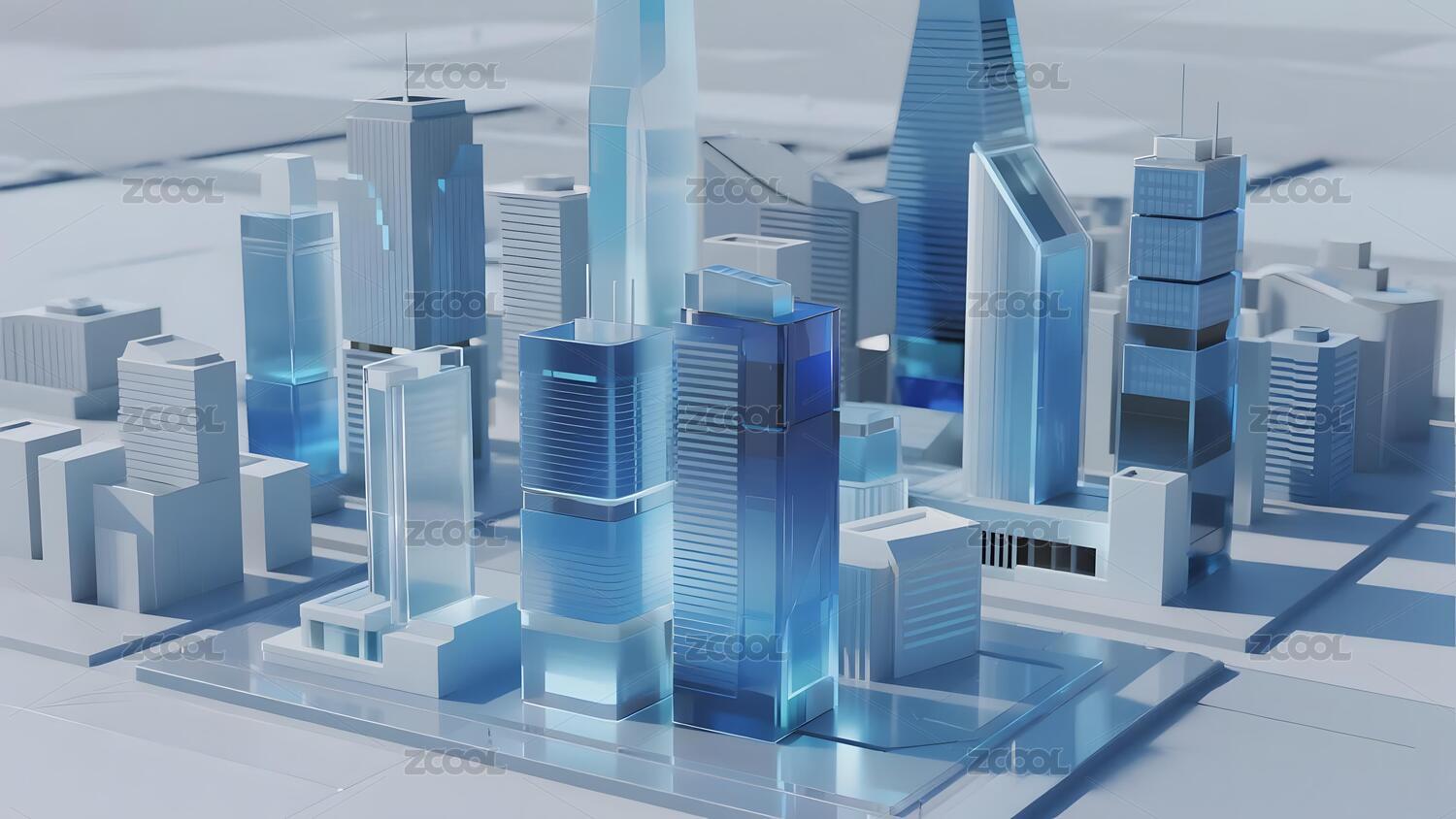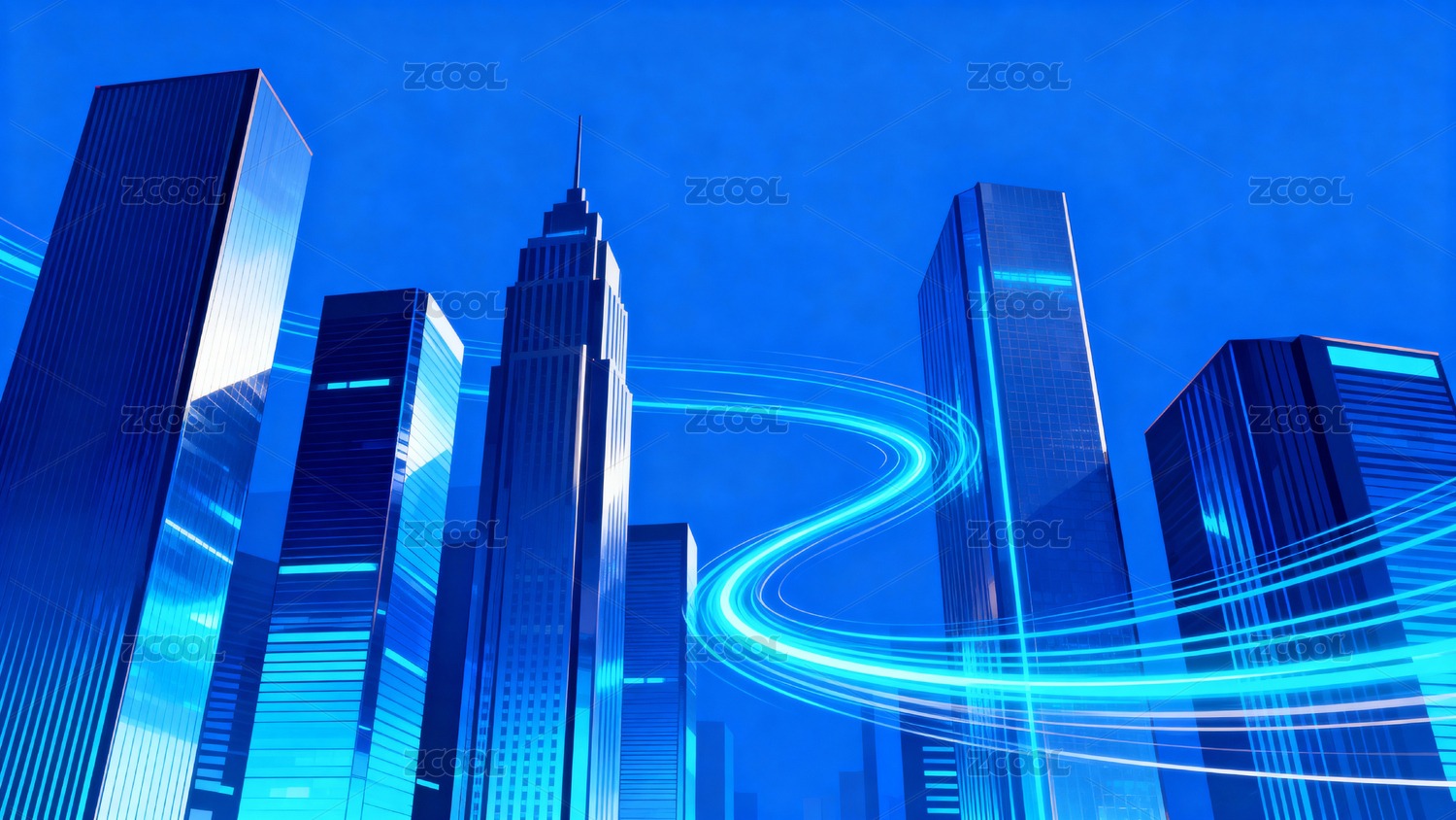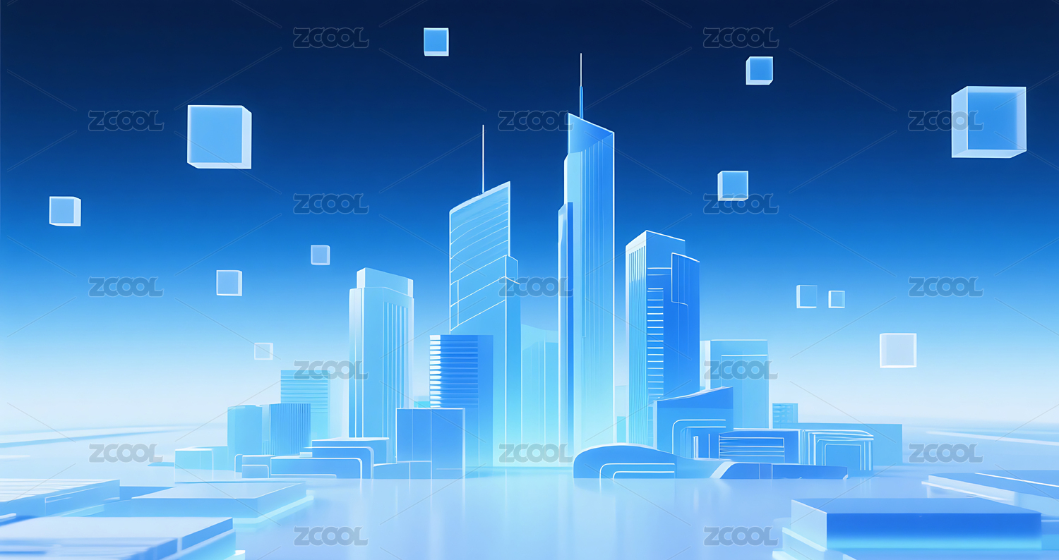 蓝色商务科技未来玻璃质感图形设计城市建筑