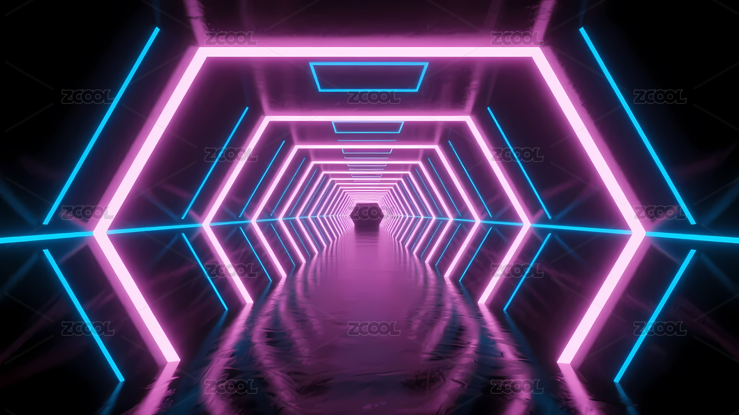 未来感霓虹六边形隧道