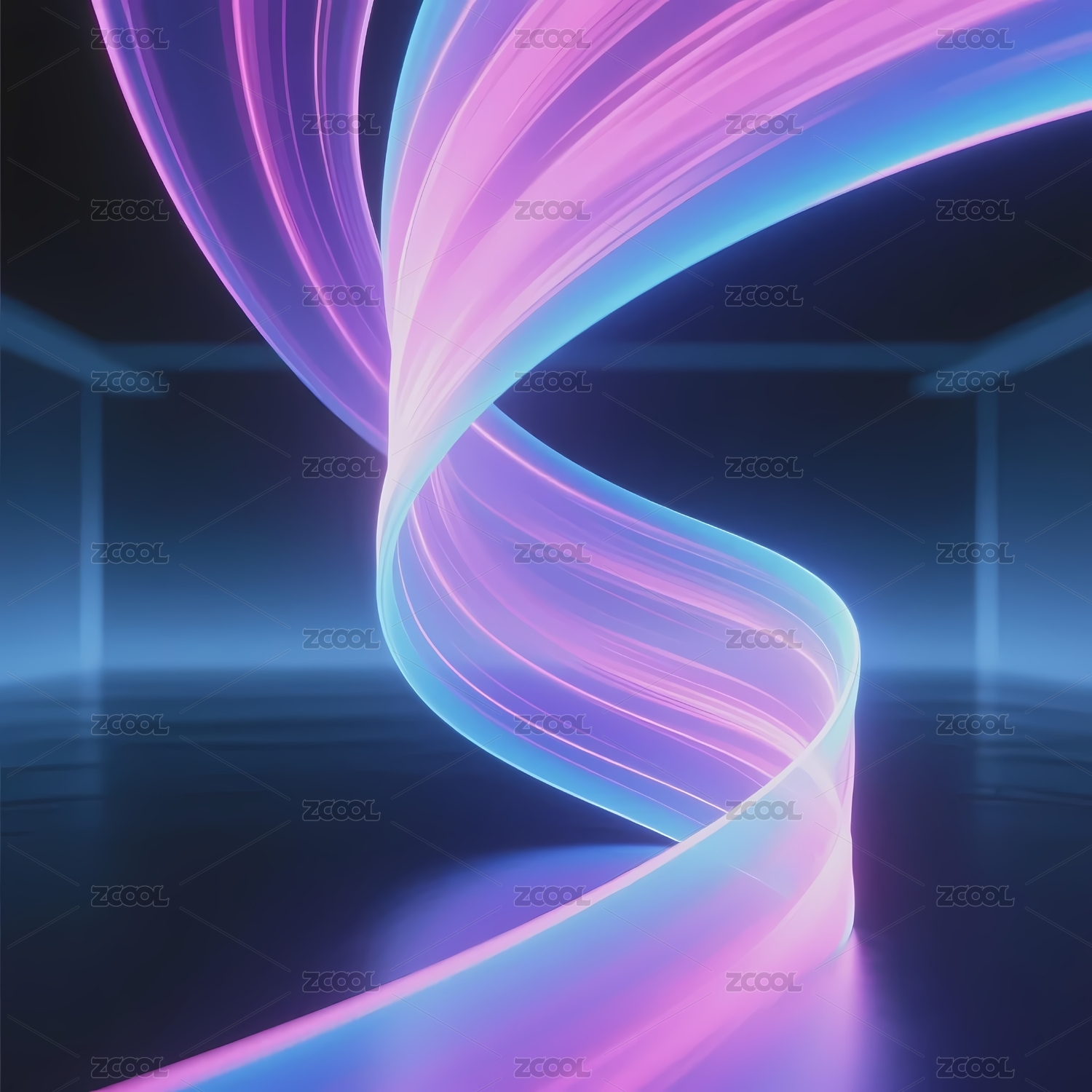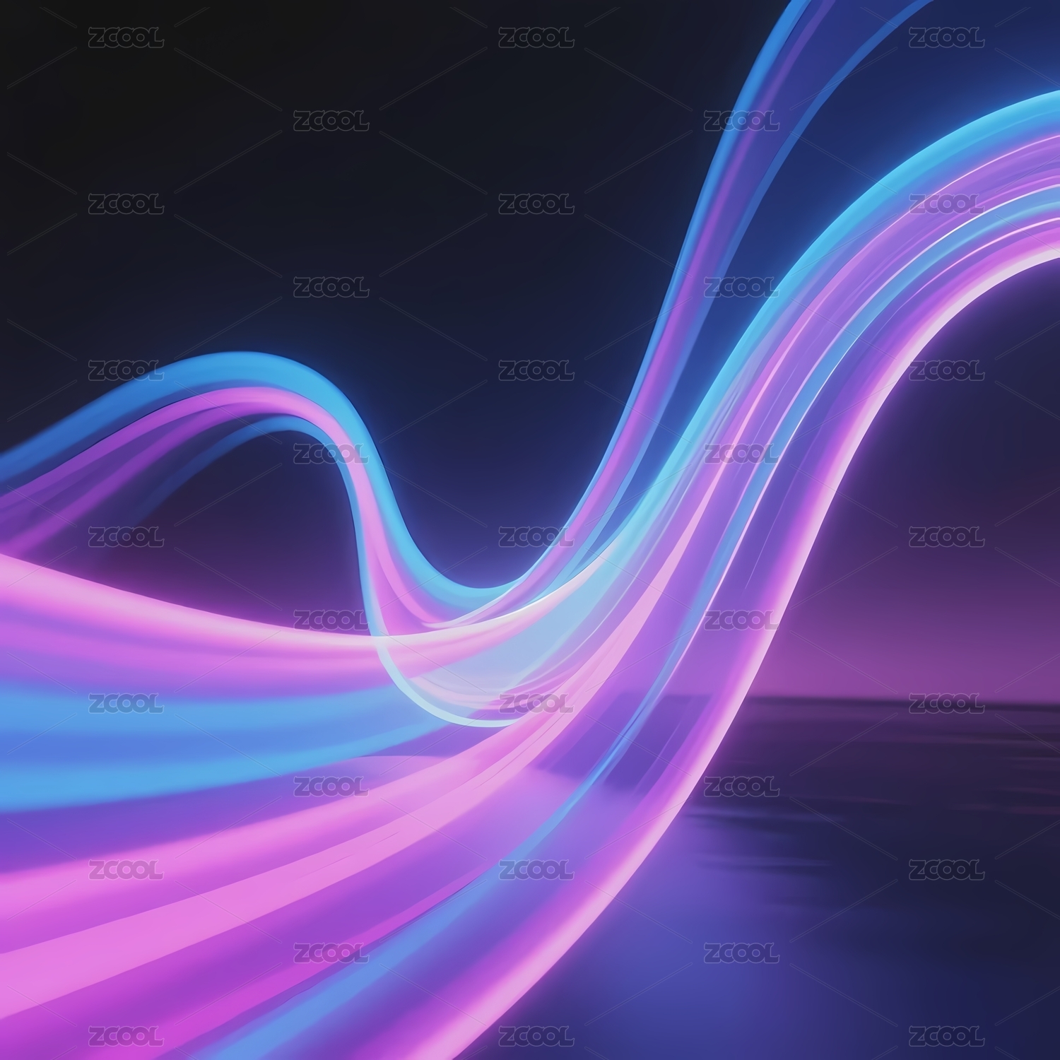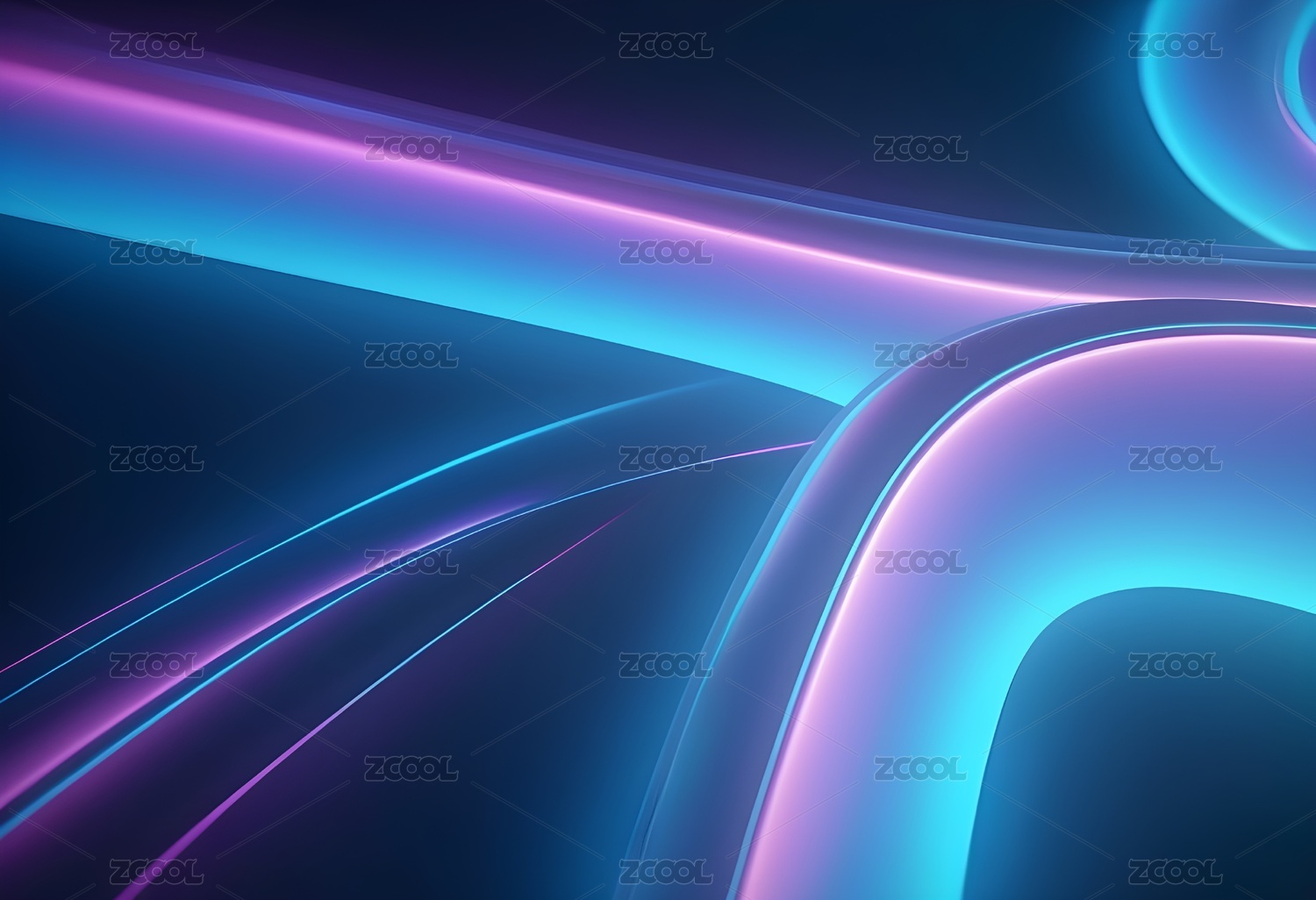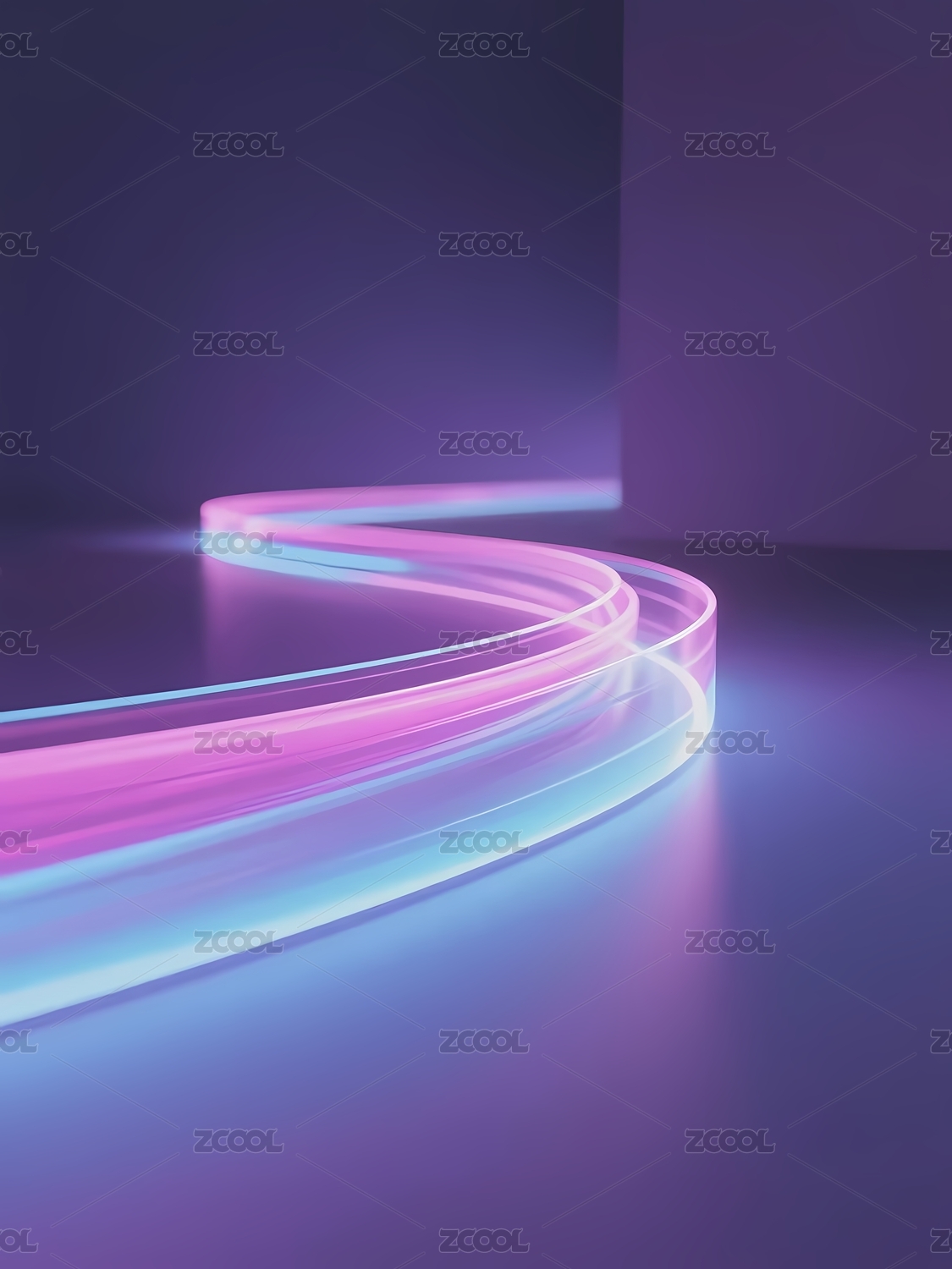 霓虹曲线紫色与蓝色的光影交织