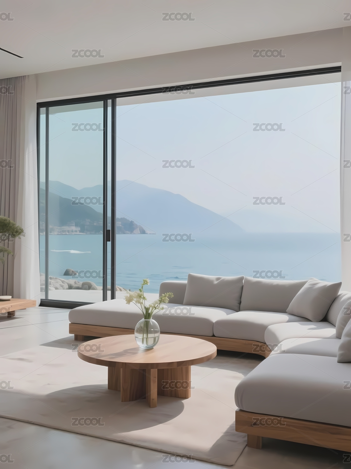 现代,明亮,室内,设计,蓝色,简约,装饰,沙发,海景,客厅